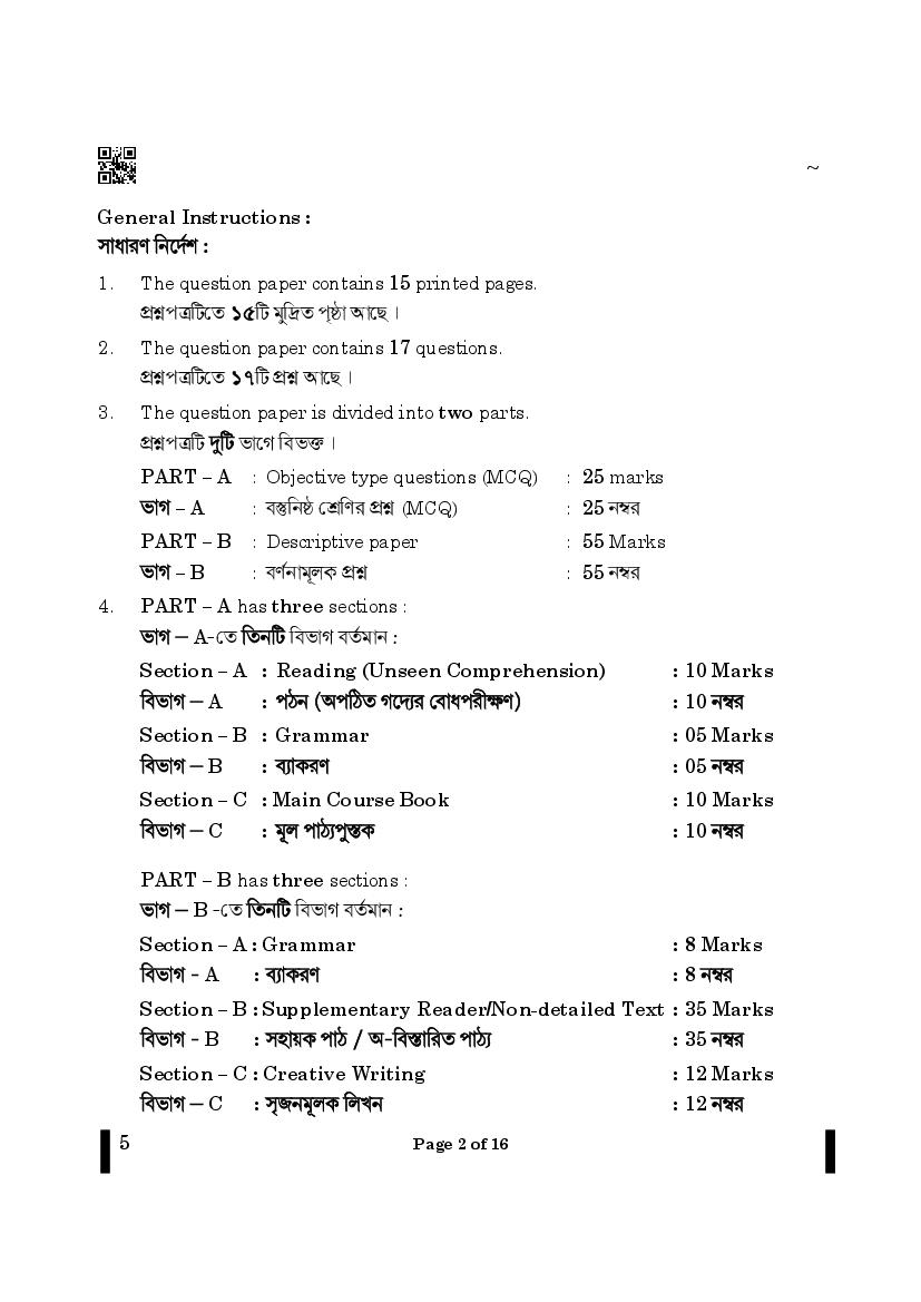 CBSE Class 12 Question Paper 2025 Bengali View Download