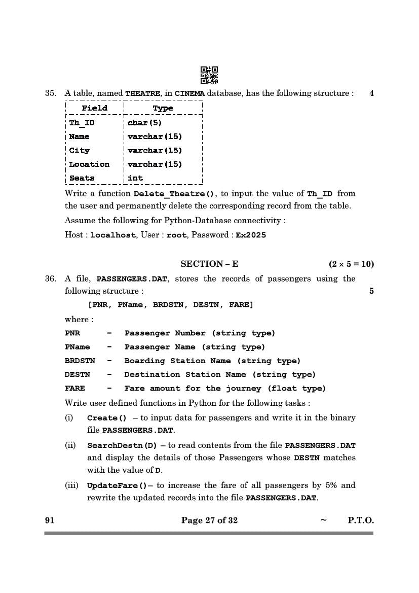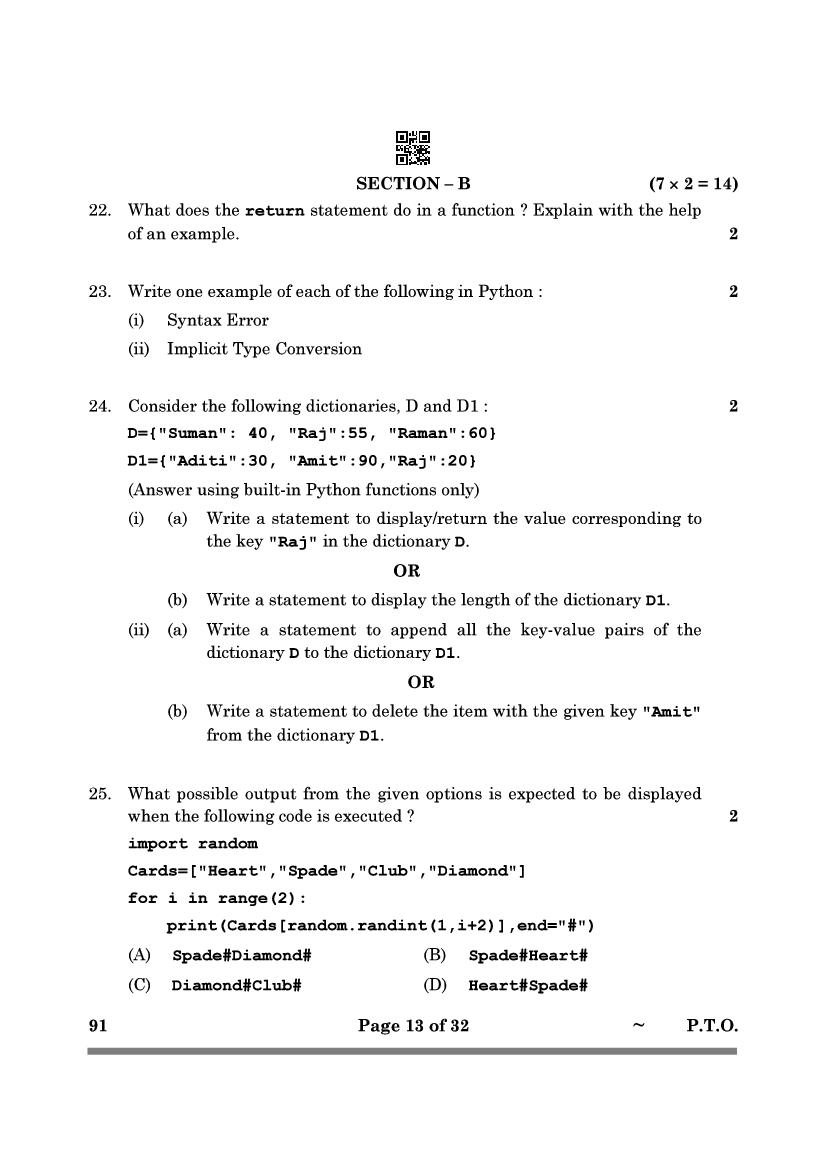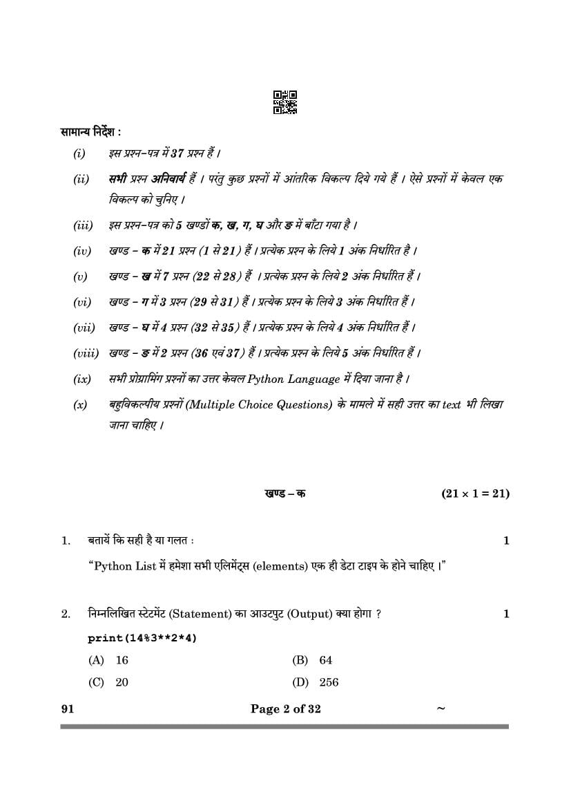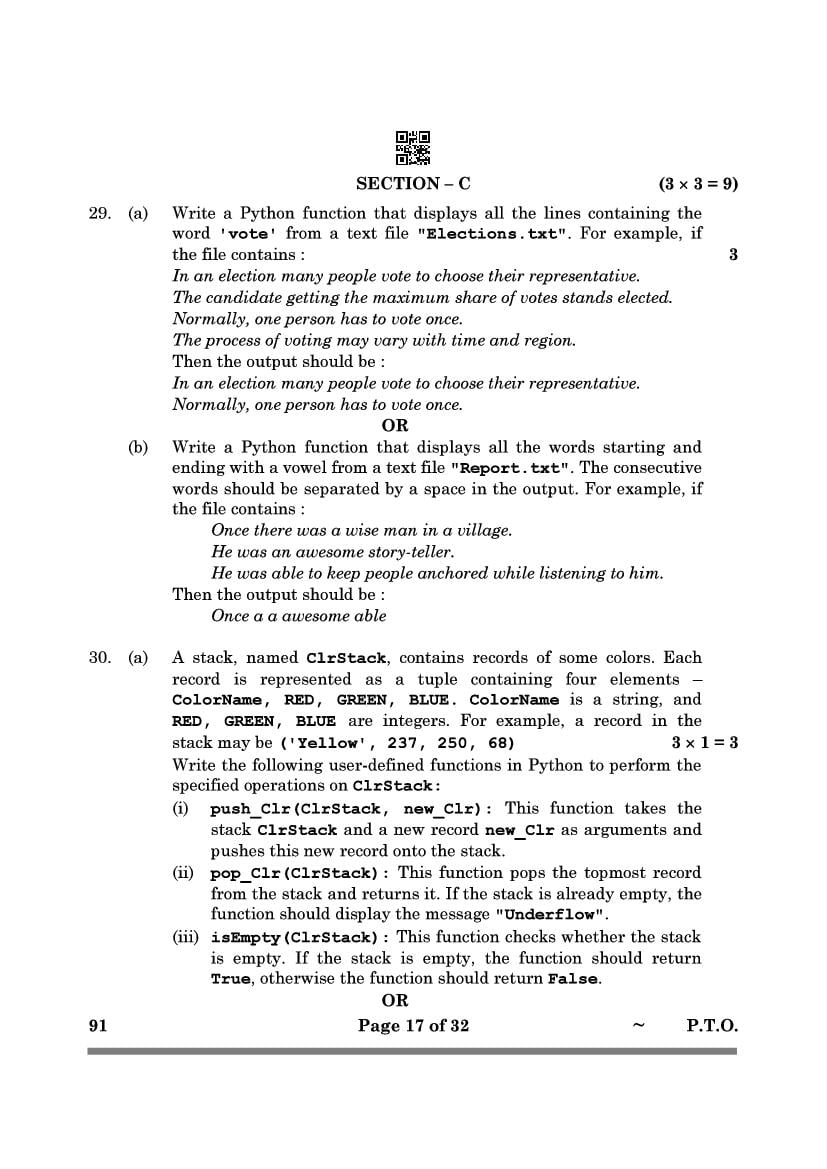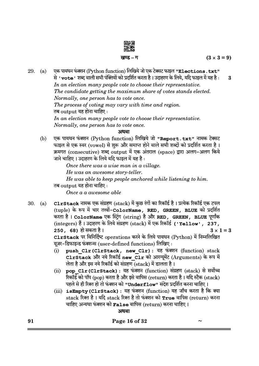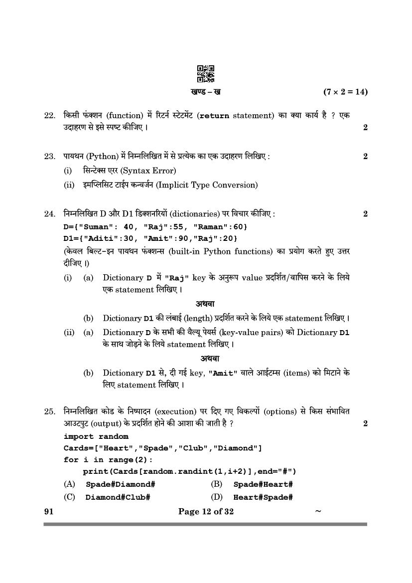 More Class 12 Computer Science Question Paper