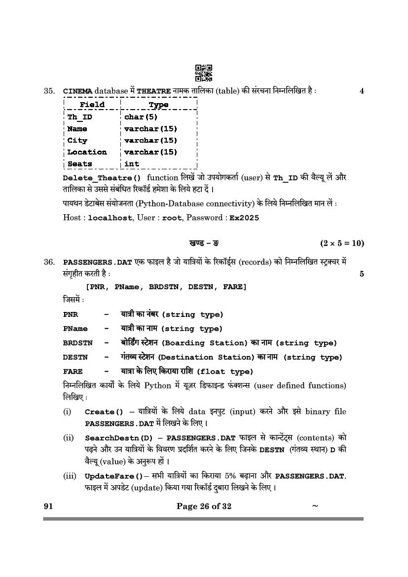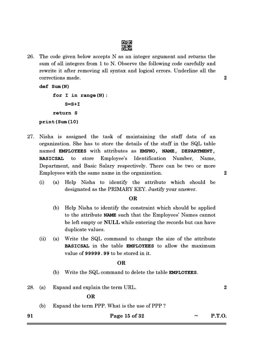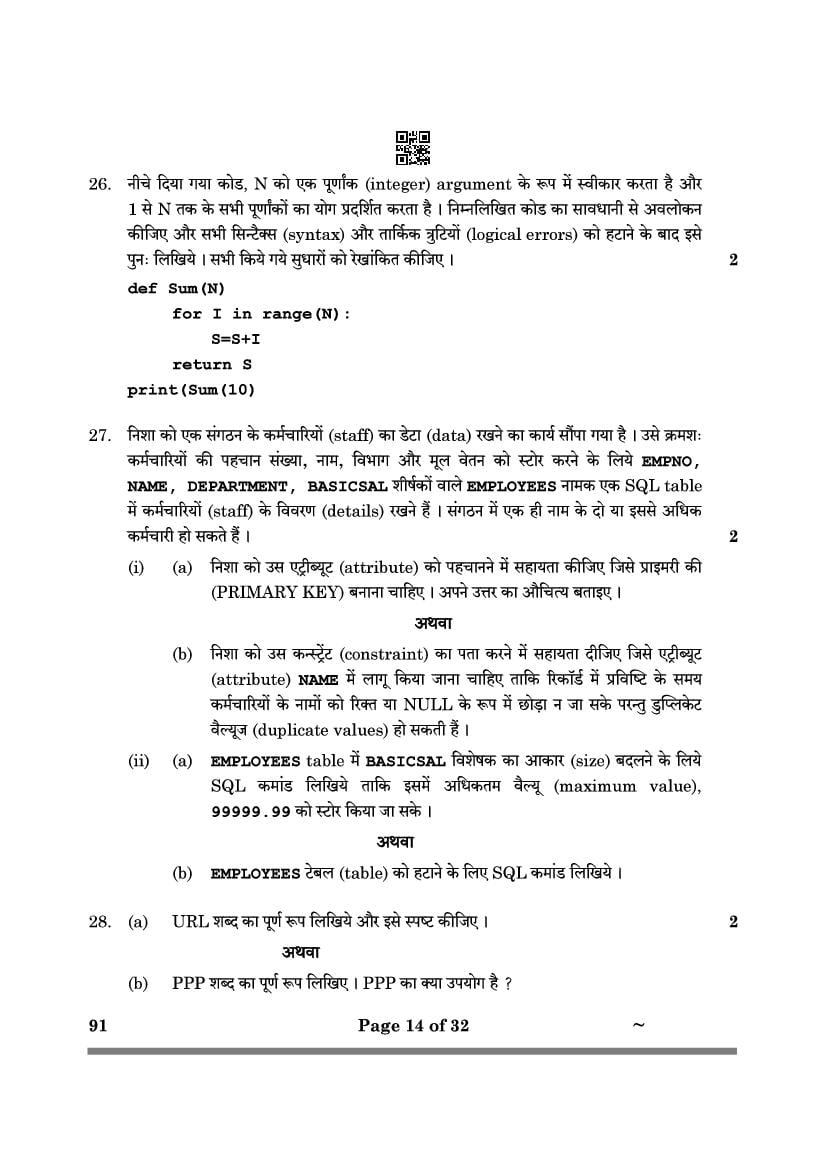CBSE Class 12 Computer Science Question Paper 2026