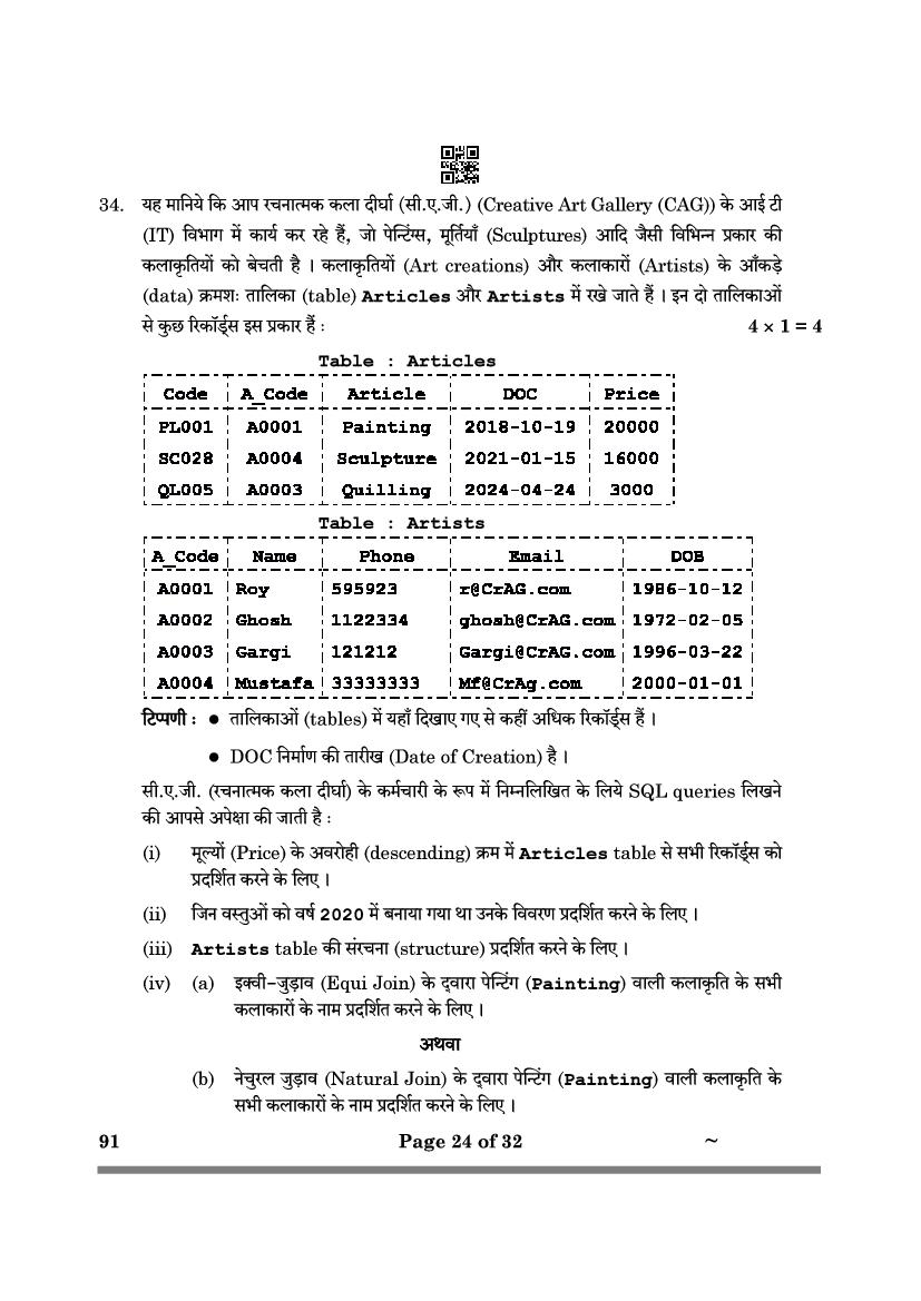 CBSE Class 12 Computer Science Question Paper 2024 PDF Download Link – Click Here to Download Question Paper