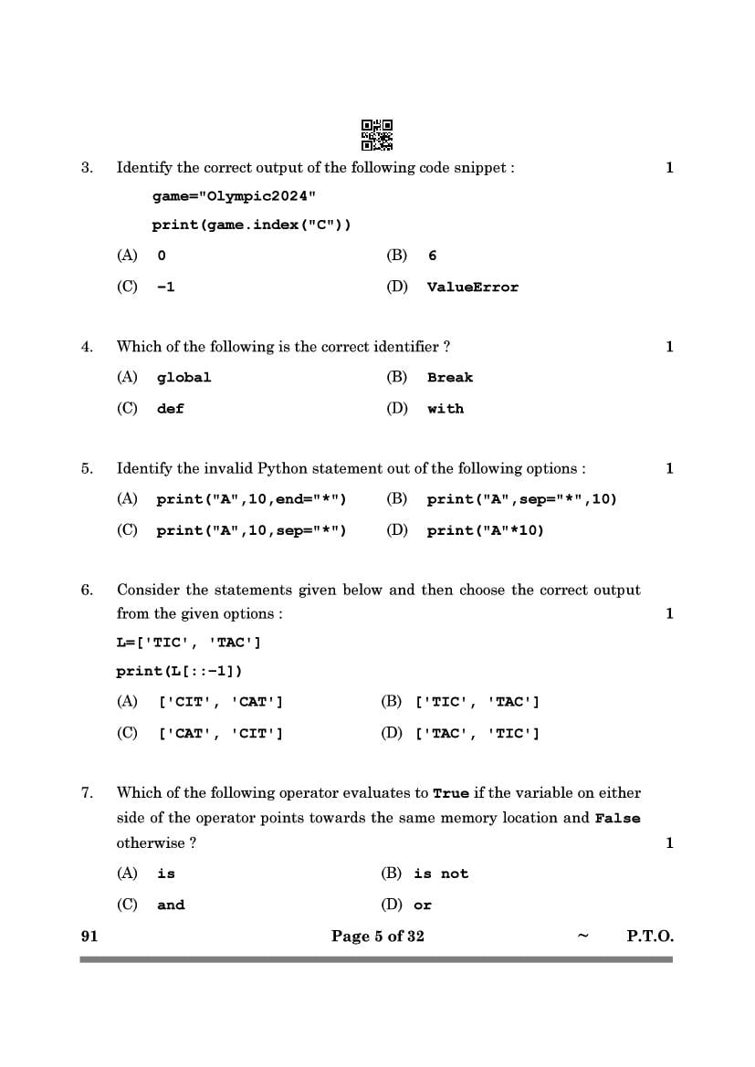 | Study Material Here | CBSE Class 12 Computer Science Previous Year Question Paper |