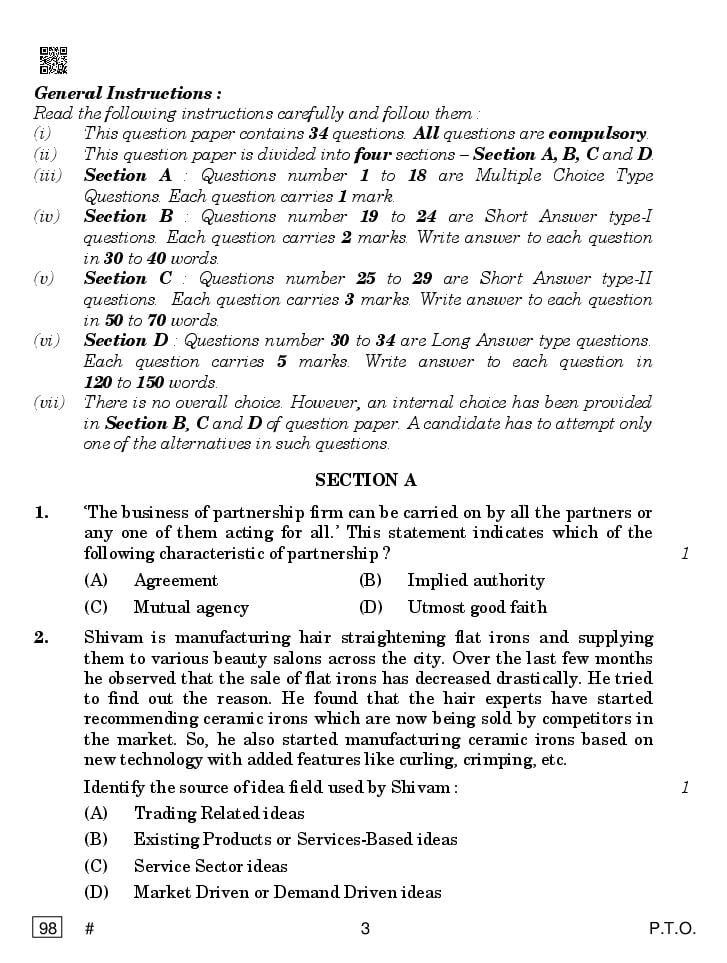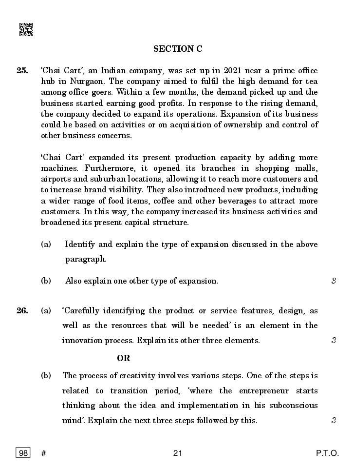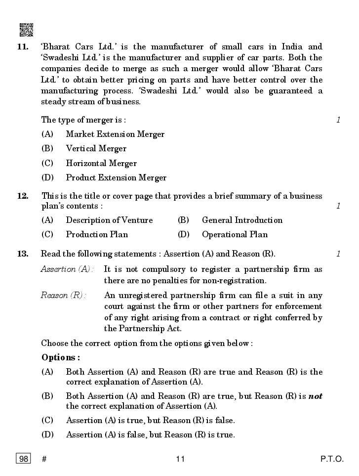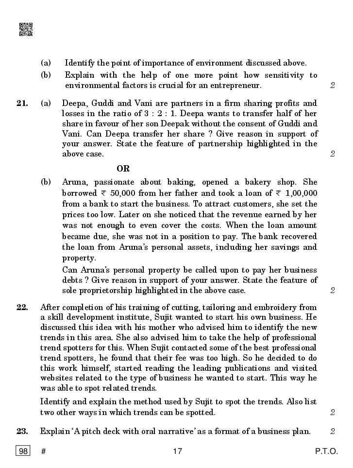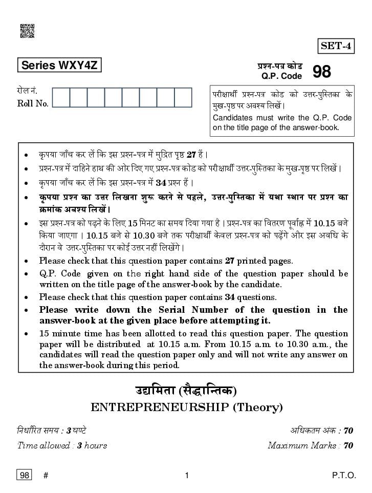 | Study Material Here | CBSE Class 12 Entrepreneurship Previous Year Question Paper |
