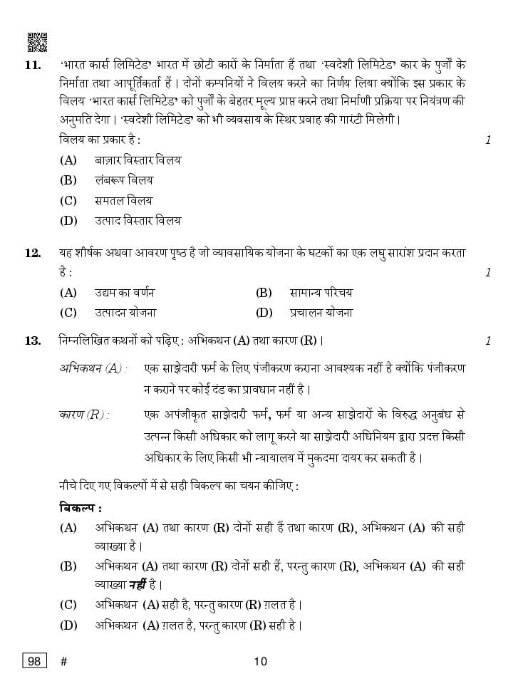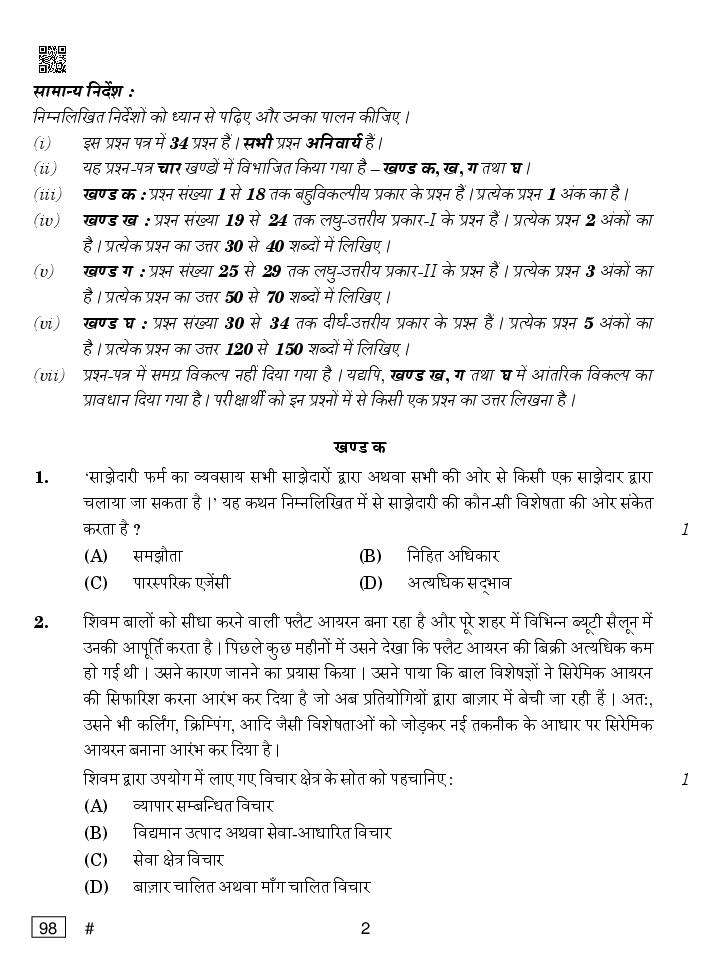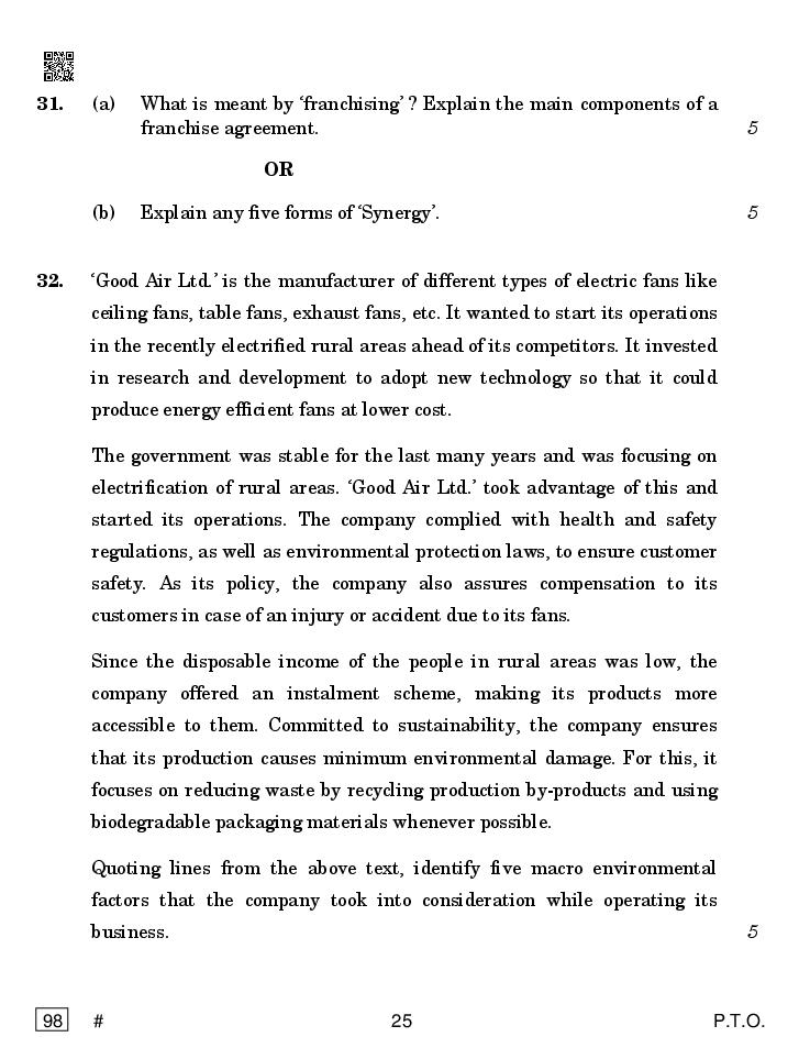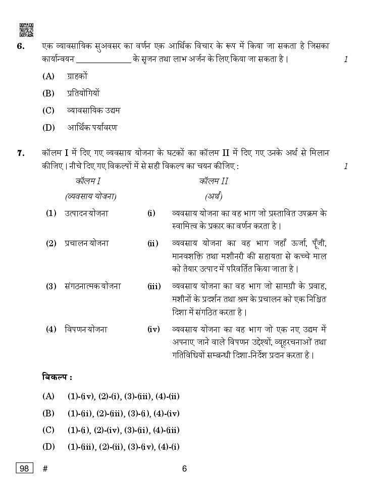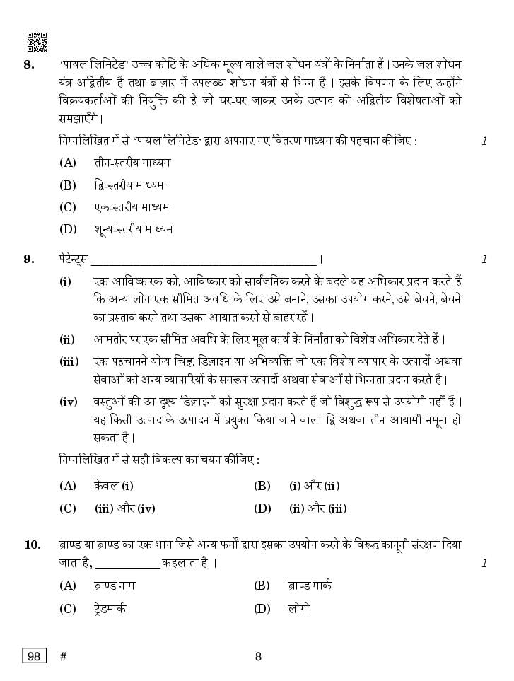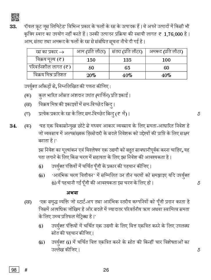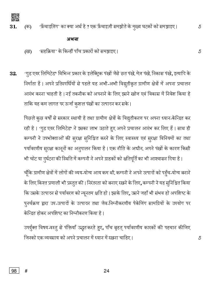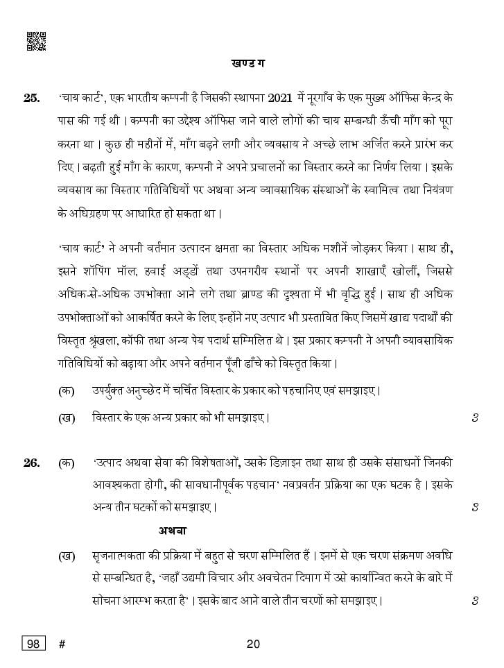 CBSE Class 12 Question Paper 2025 Entrepreneurship View Download