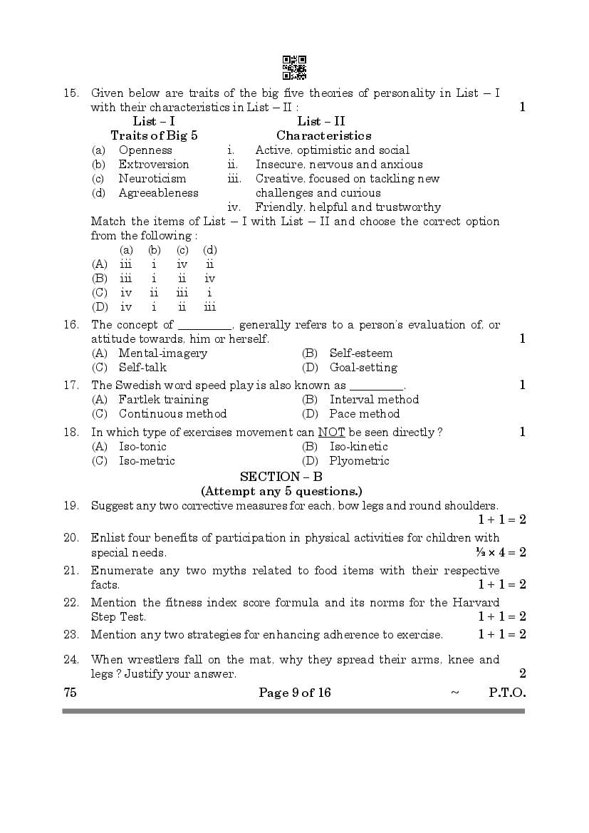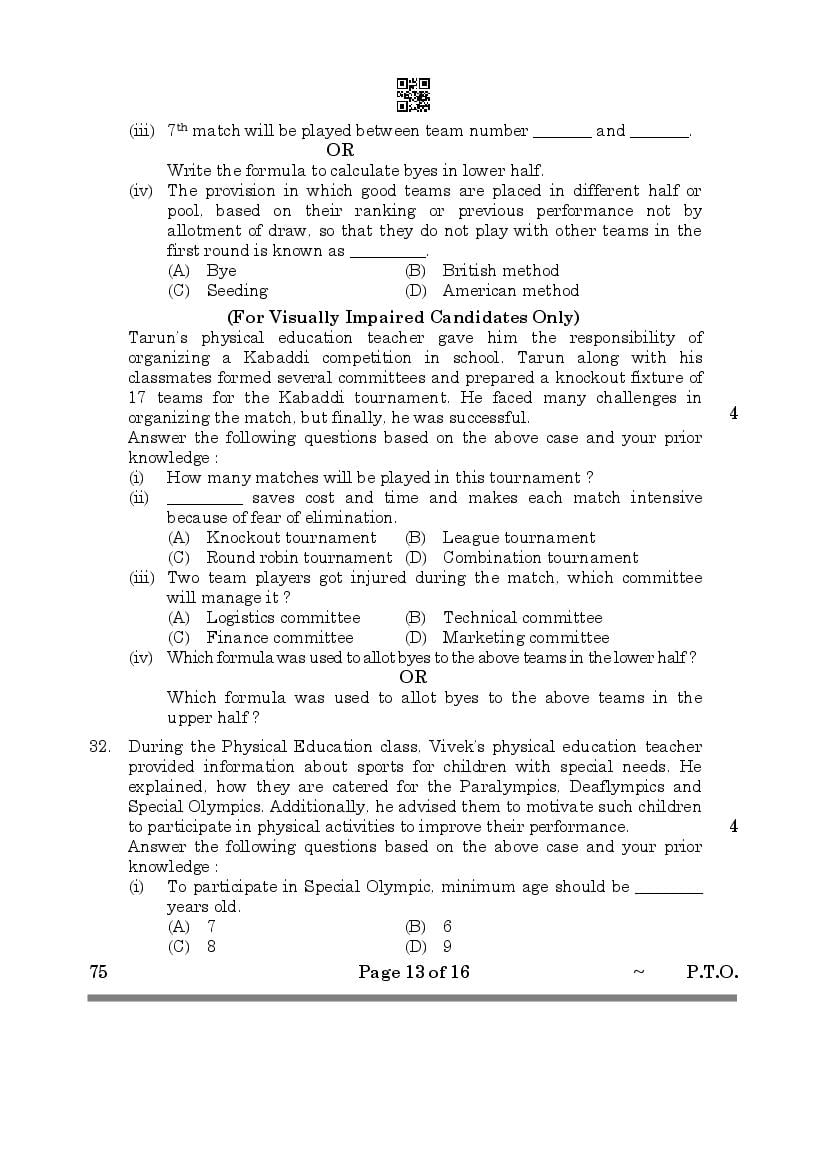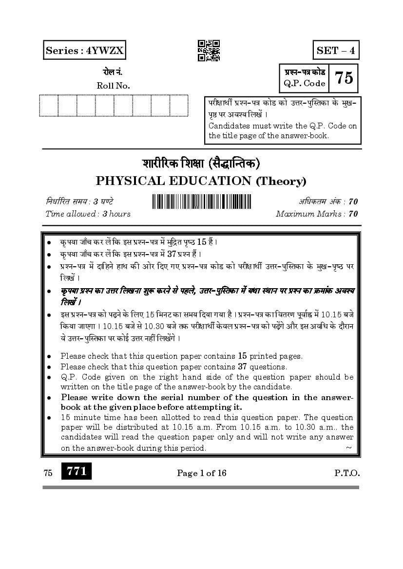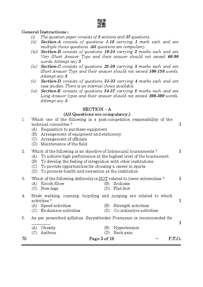 | Study Material Here | CBSE Class 12 Physical Education Previous Year Question Paper |