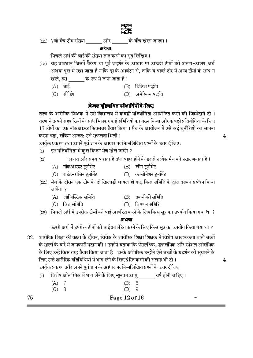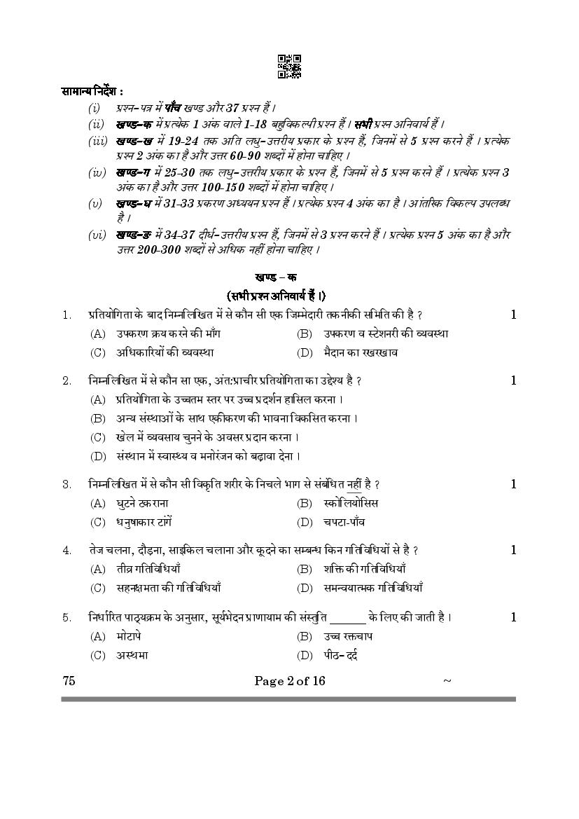 CBSE Class 12 Question Paper 2025 Physical Education View Download