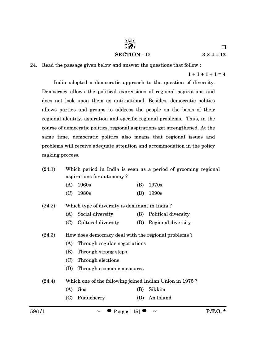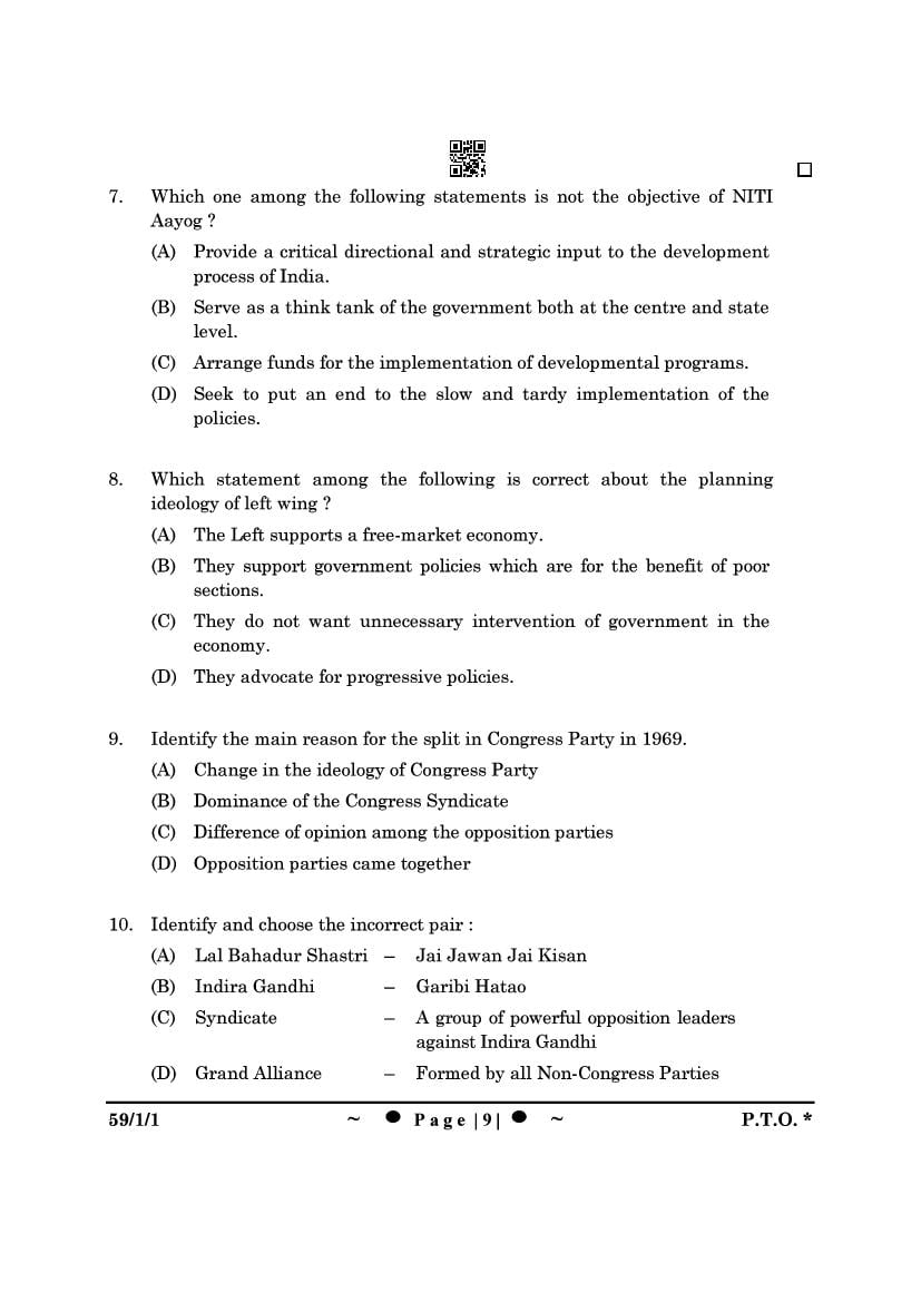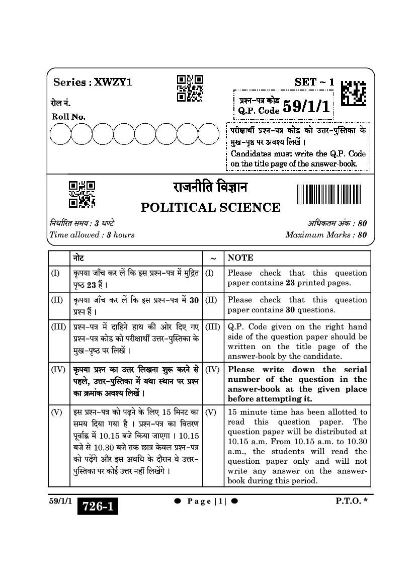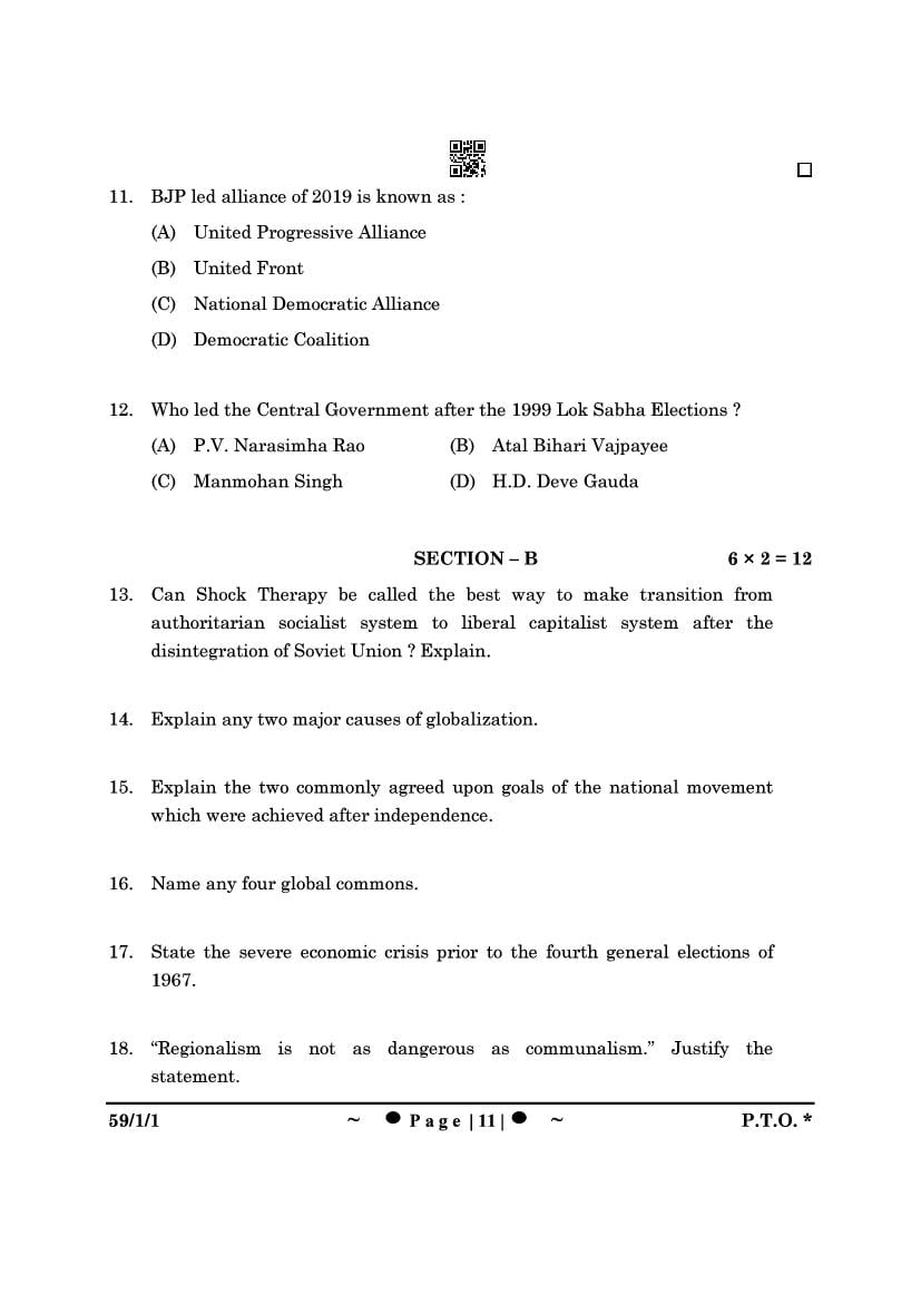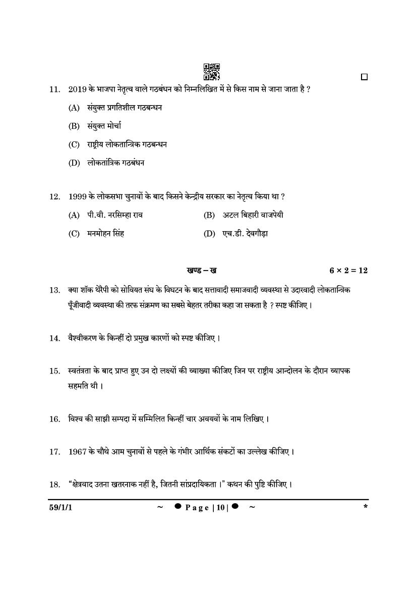 | Study Material Here | CBSE Class 12 Political Science Previous Year Question Paper |