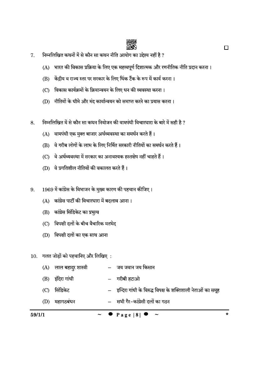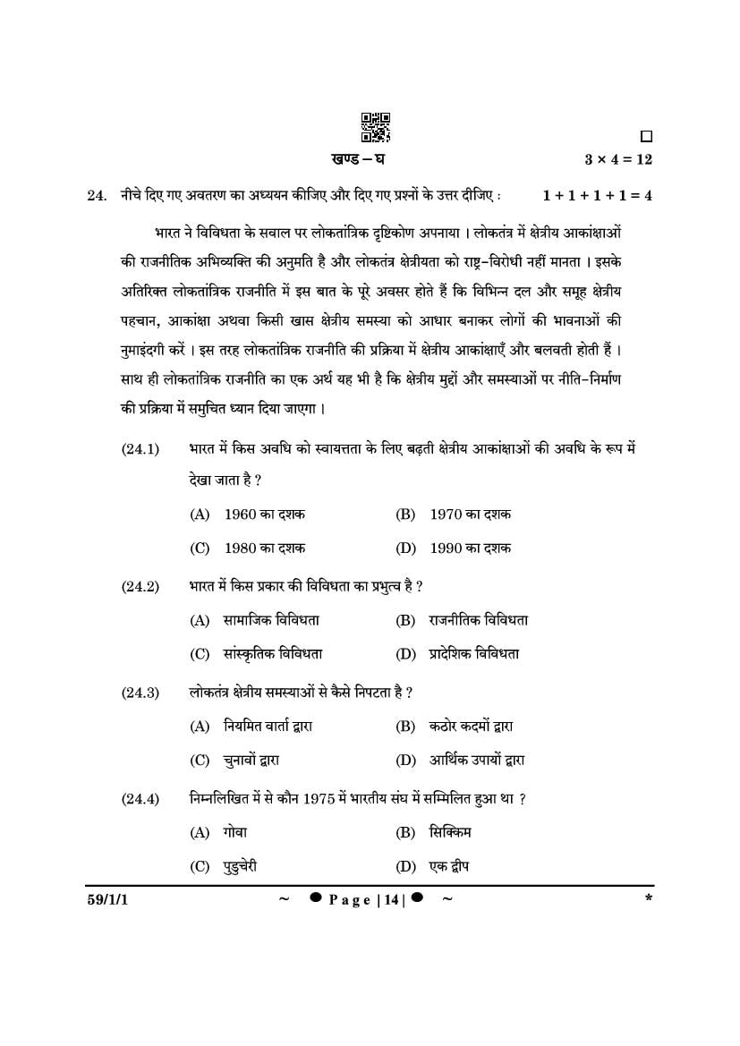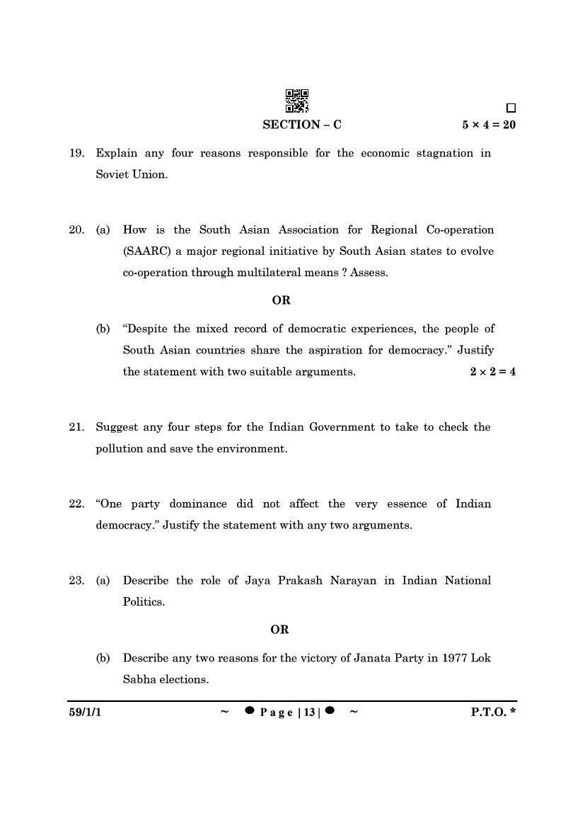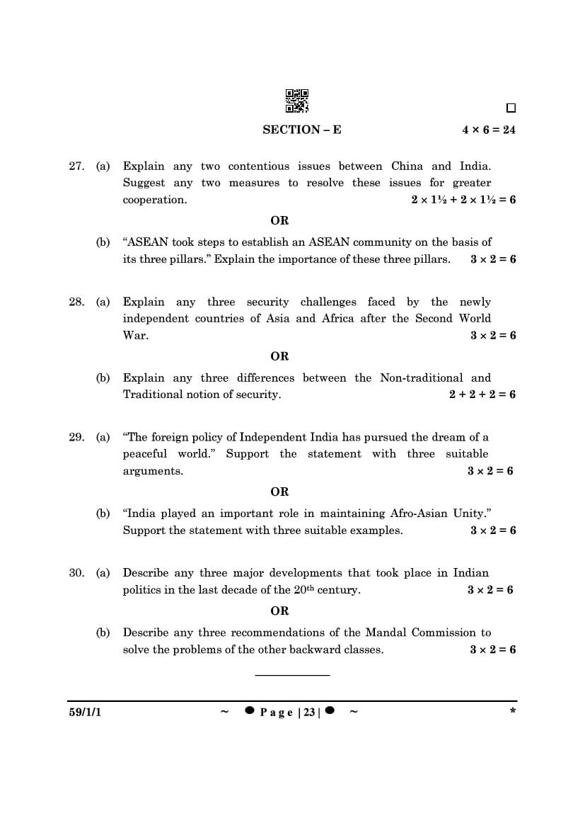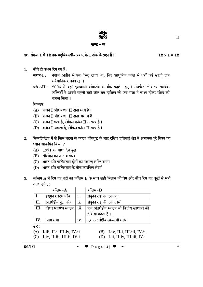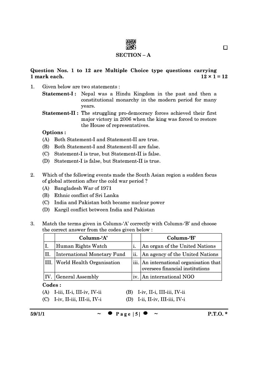 More Class 12 Political Science Question Paper