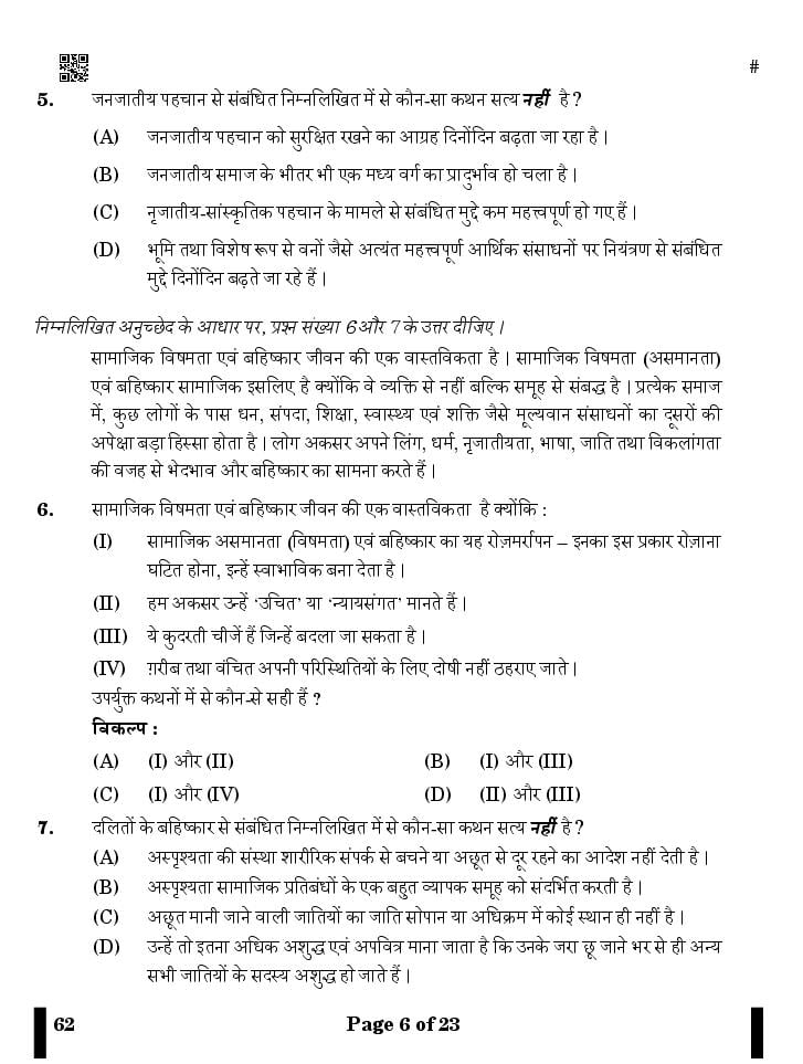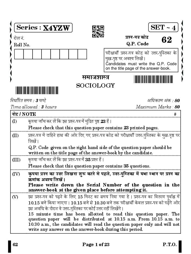 CBSE Class 12 Sociology Question Paper 2024 PDF