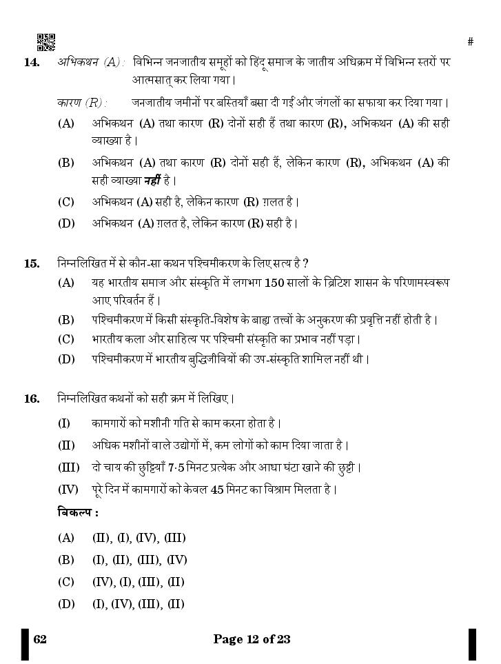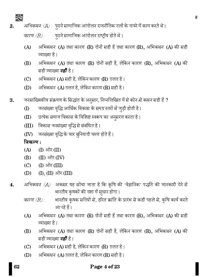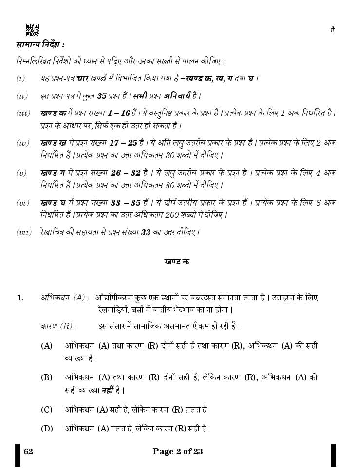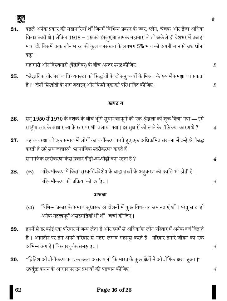 The CBSE question paper for class 12 Sociology of the exam held in past years is as follows.