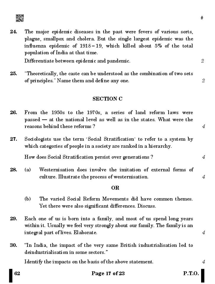 | Study Material Here | CBSE Class 12 Sociology Previous Year Question Paper |