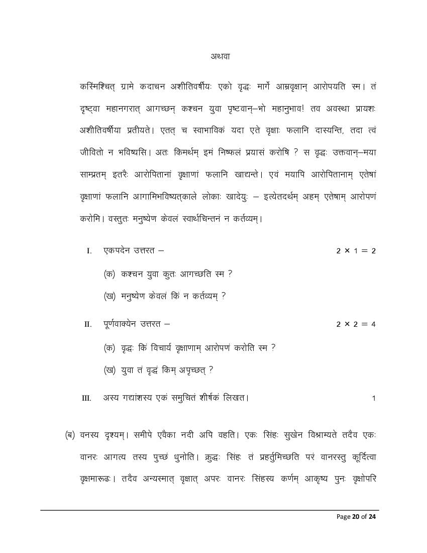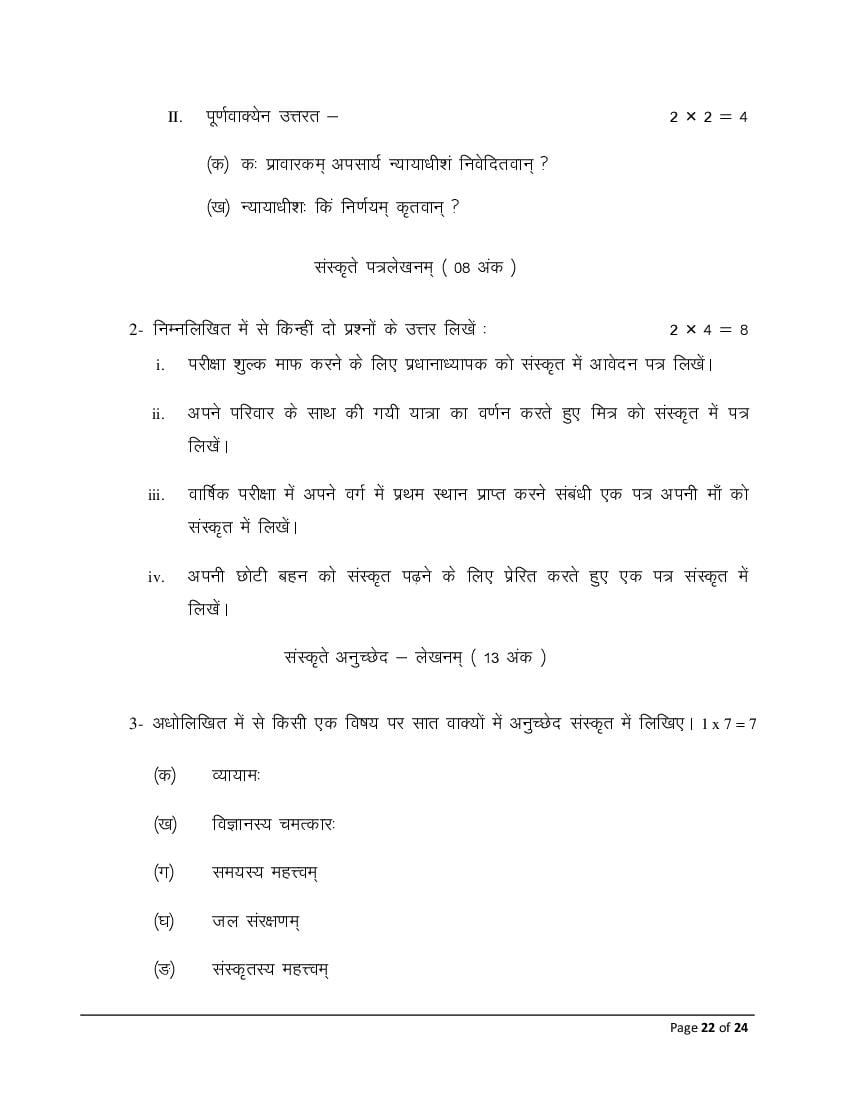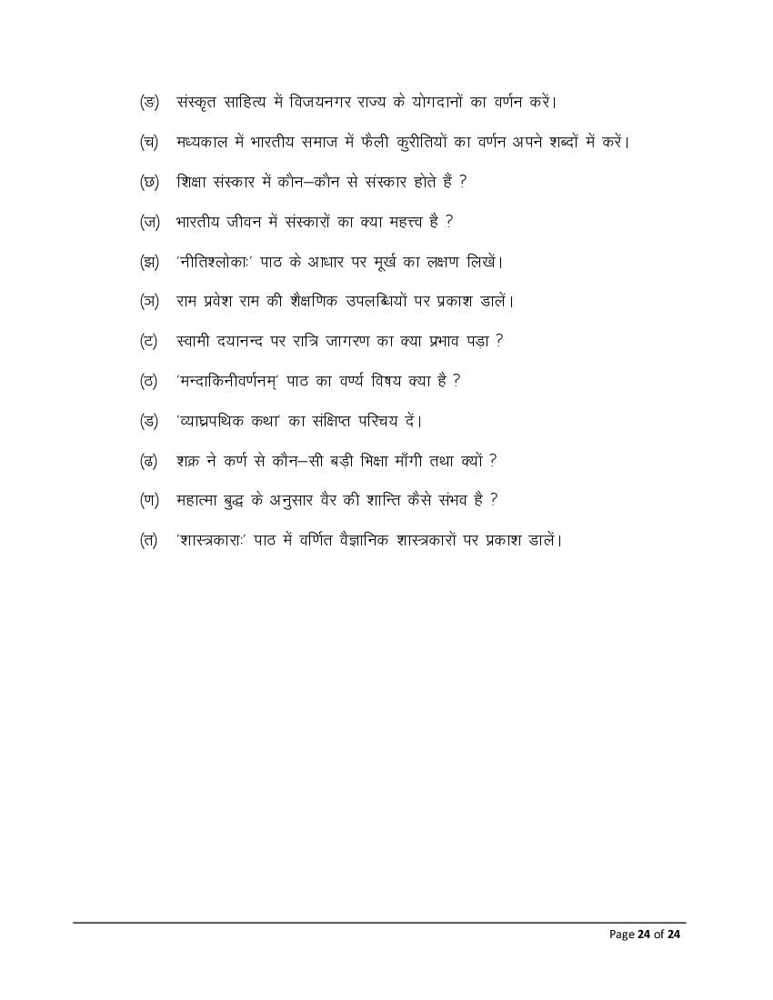 The Bihar Board model paper for class 10 Sanskrit is as follows.