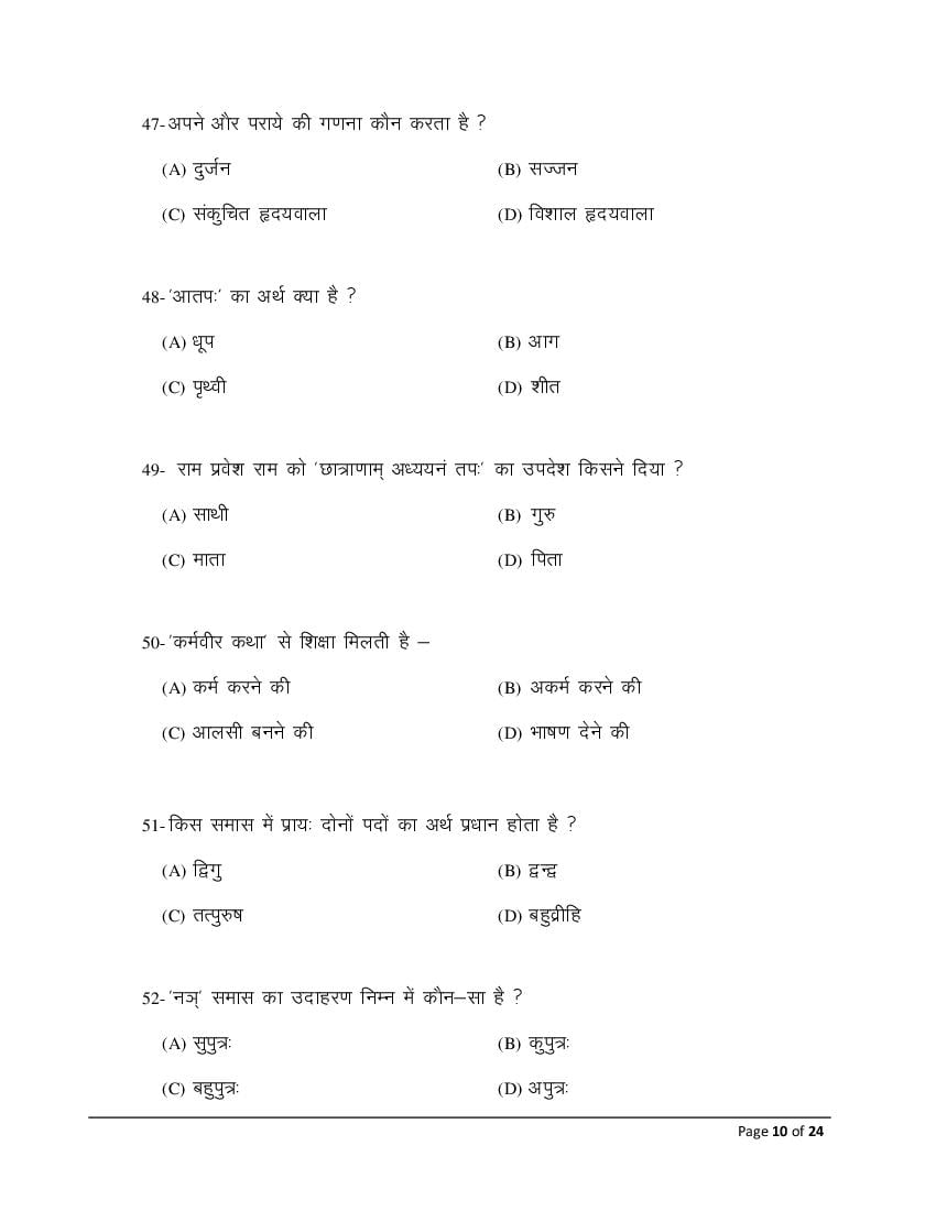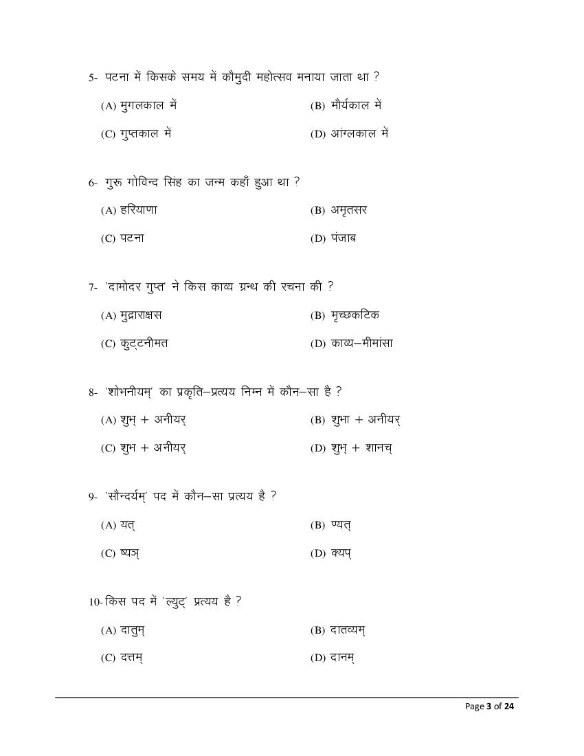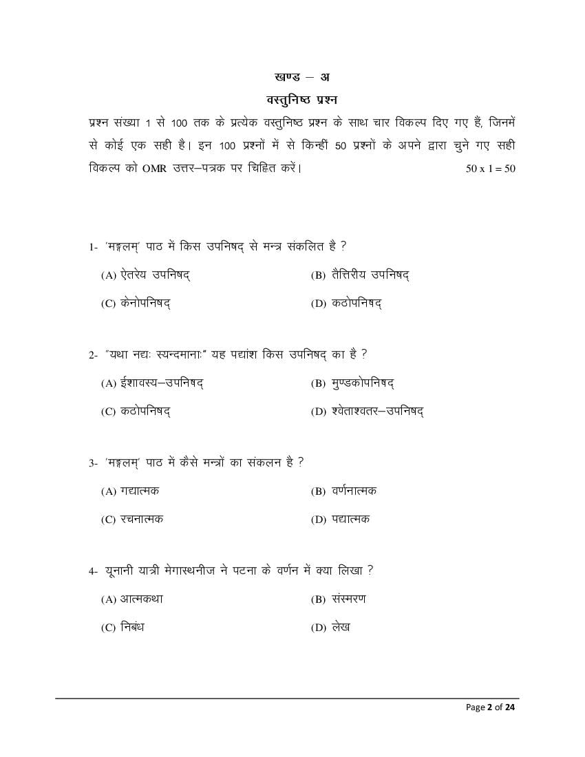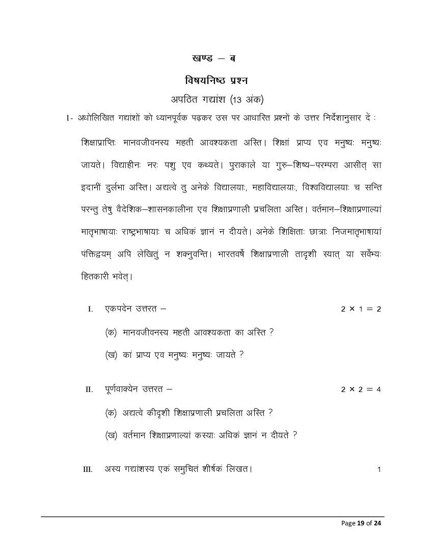 The Bihar Board model paper for class 10 Sanskrit is as follows.
