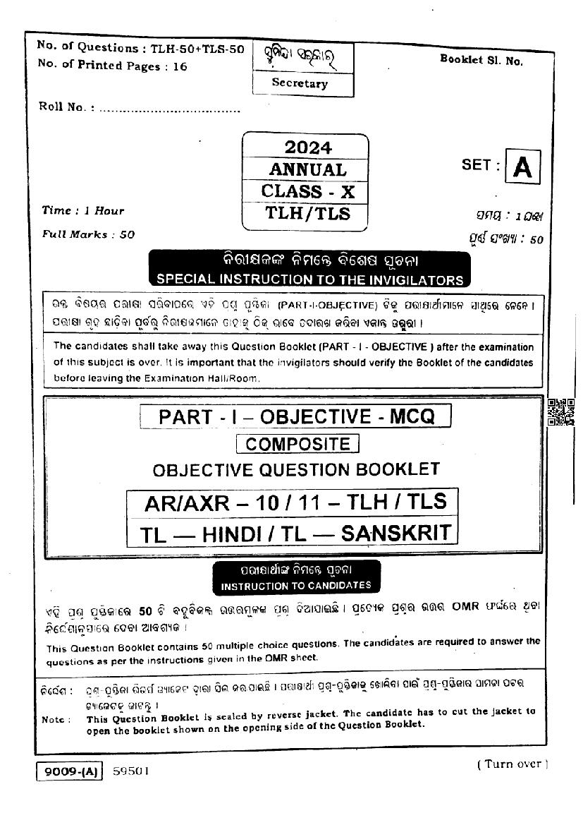 Odisha 10 Hindi Question Paper 2024 Download Link – Click Here to Download Question Paper PDF
