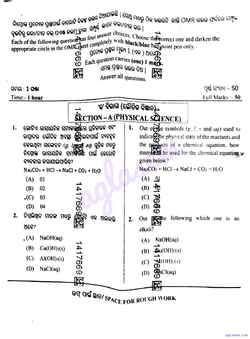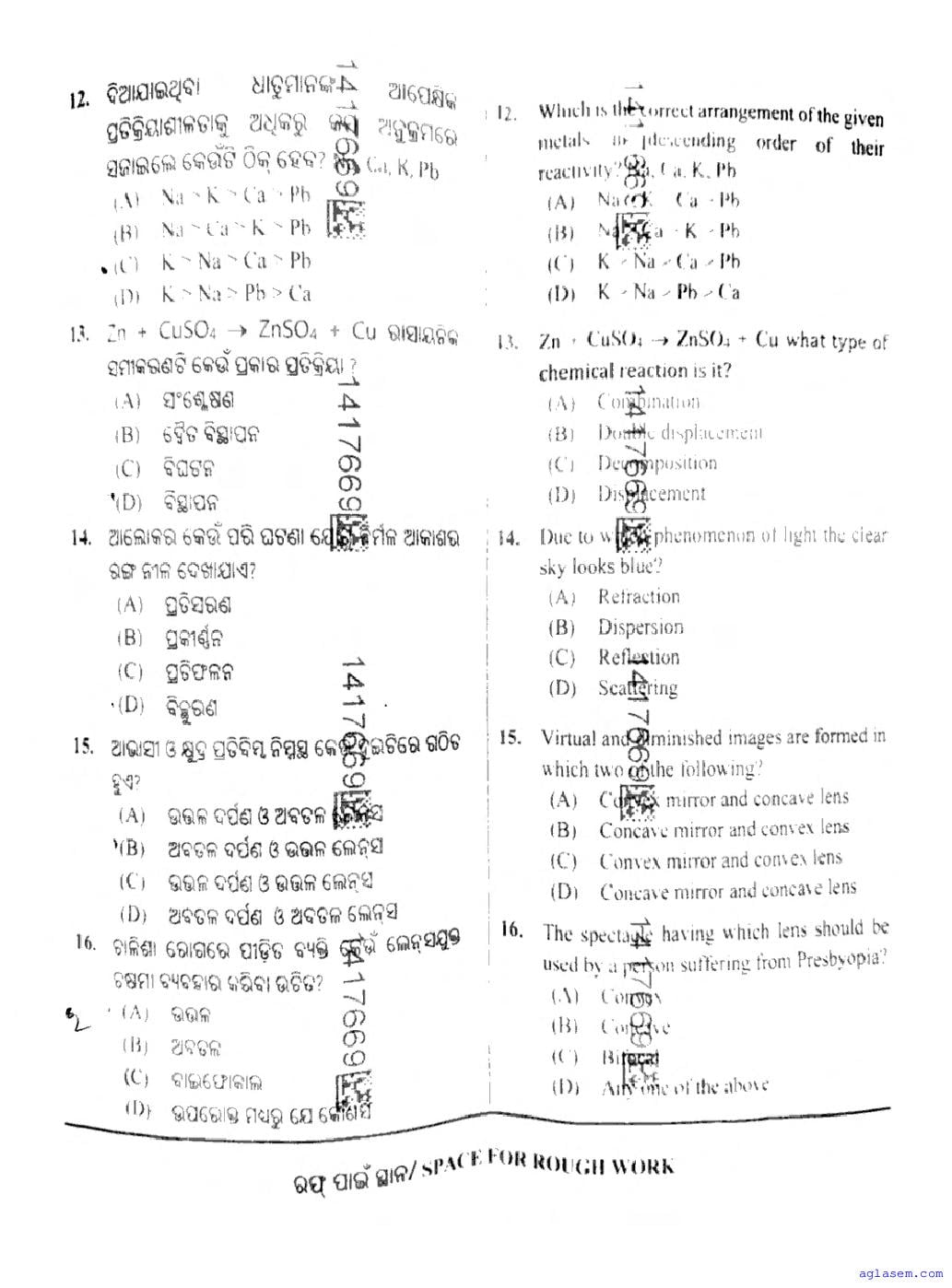 | Educational Resource Here | Odisha Board Previous Year Question Paper of Class 10 Science |