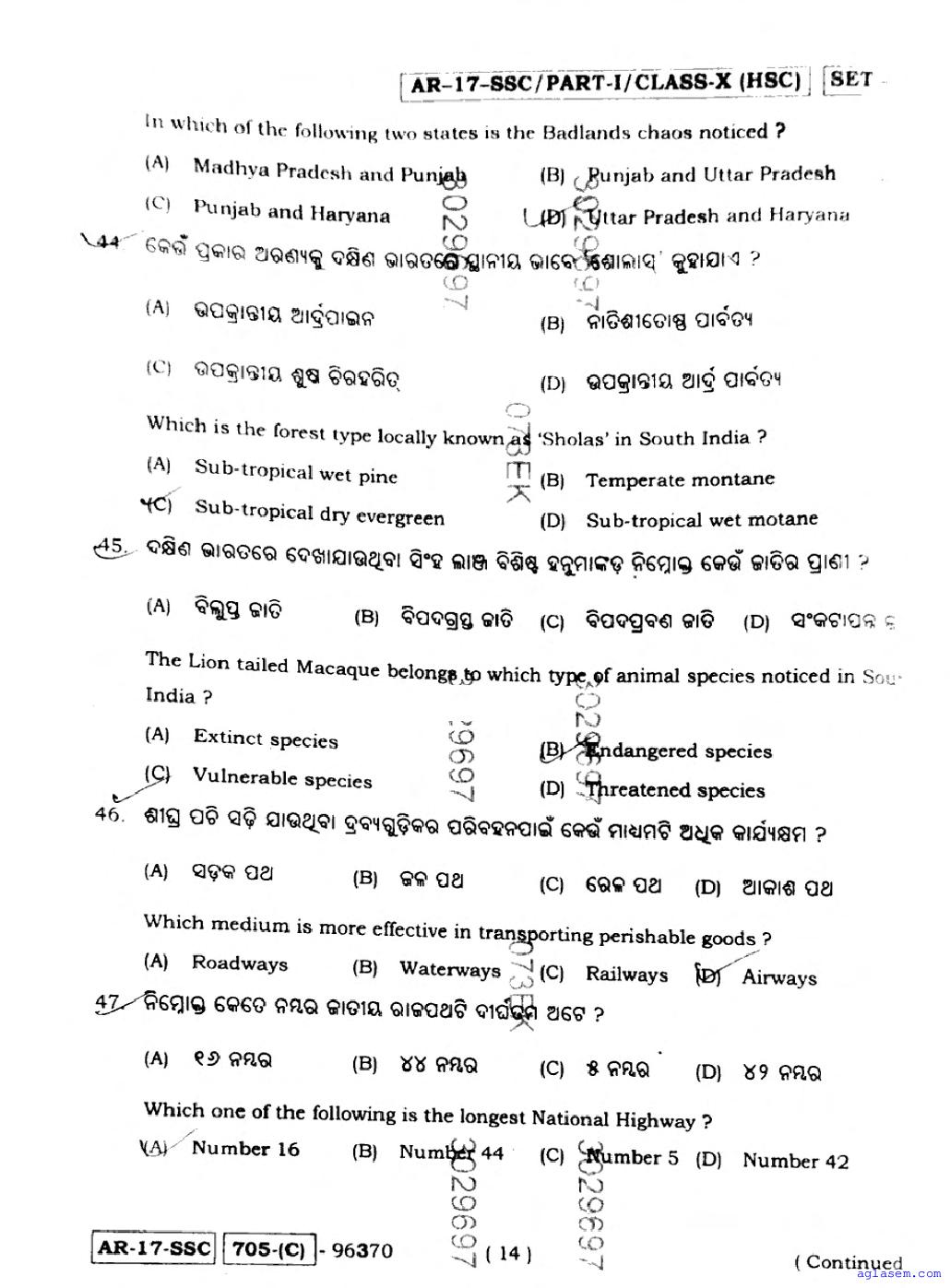 Besides the Social Science question paper, you can download 10 question for other subjects as well. Thus the Odisha board class 10 question papers for all subjects are as follows.