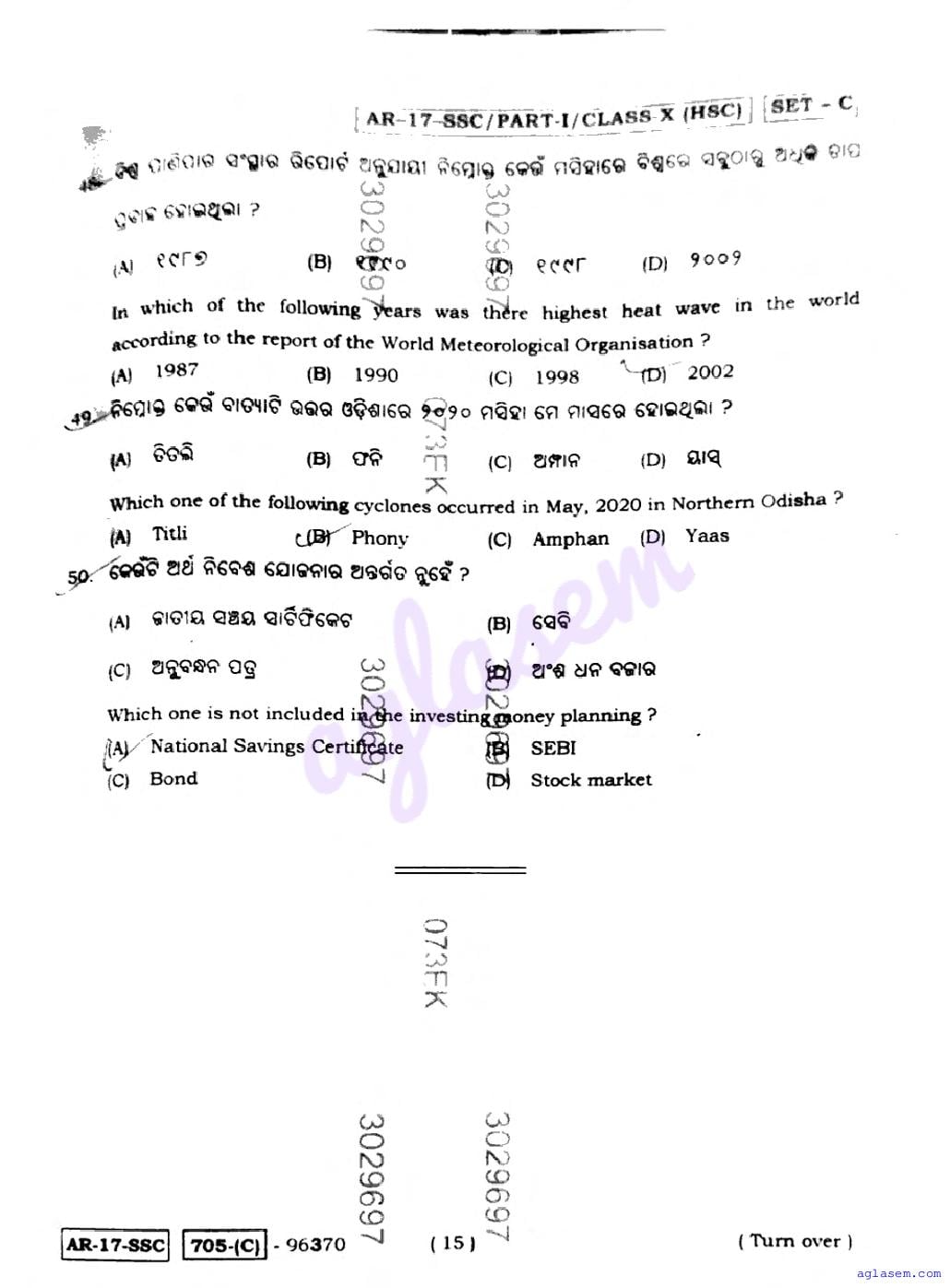 Odisha HSE Class 10 Social Science Question Paper 2026 has been published here at aglasem. You can now download the 10 Social Science Question Paper PDF to prepare for your exam. This Odisha 10 Question Paper contains actual questions asked in Social Science test in previous year class 10 exams. Therefore it is a very useful study material for Social Science subject which helps you score full marks in 10 exams.