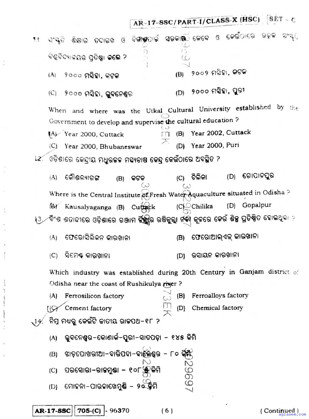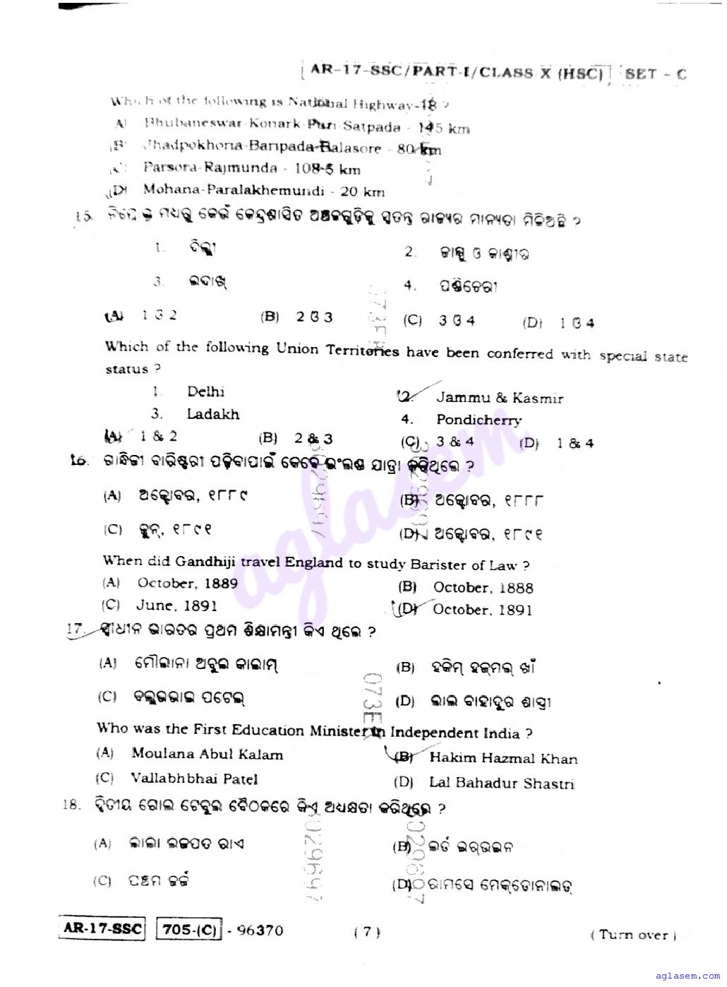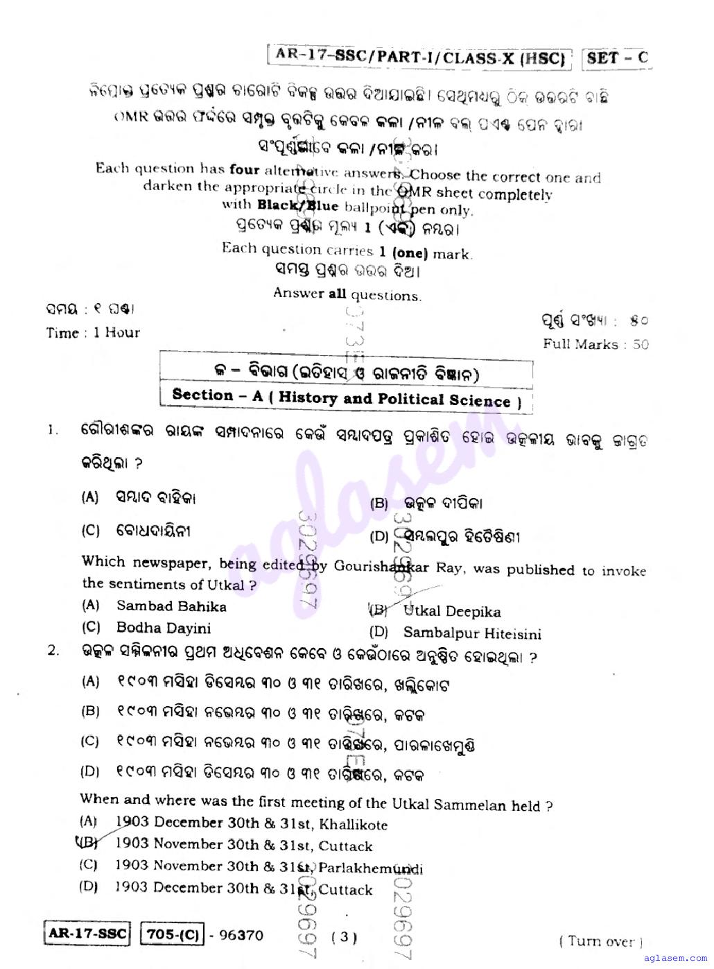 Odisha 10 Social Science Question Paper PDF