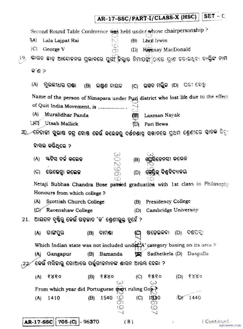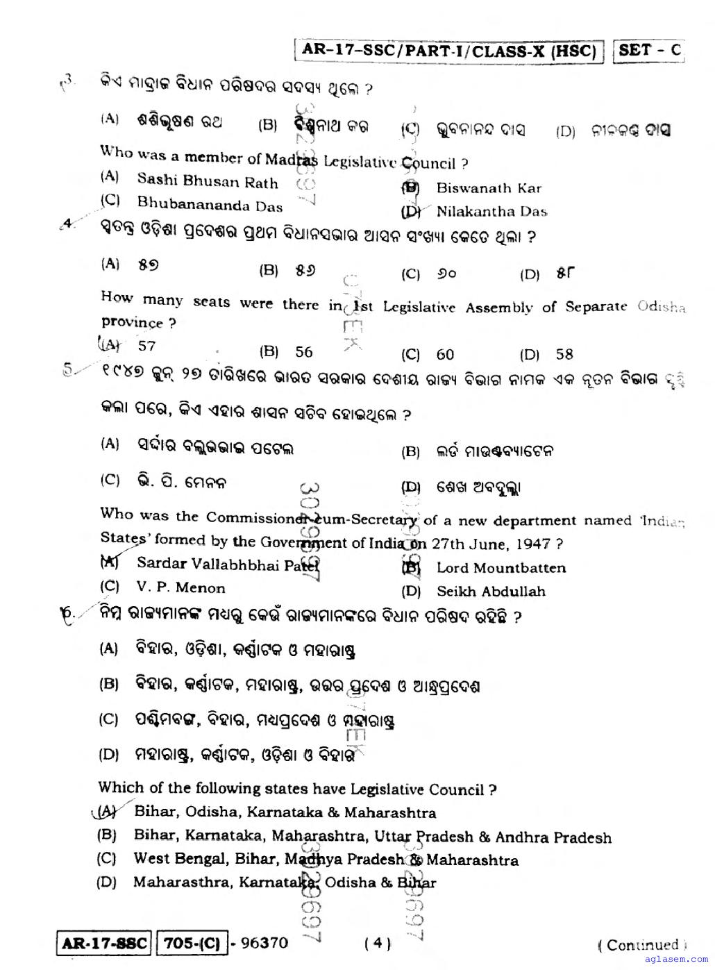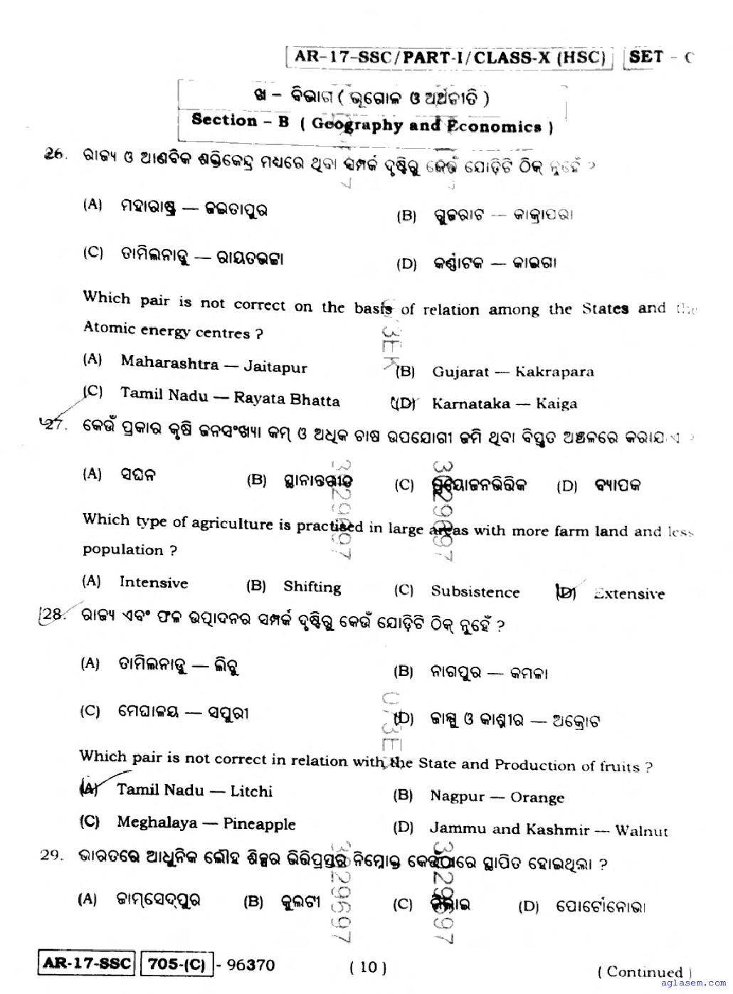 Odisha 10 Question Papers