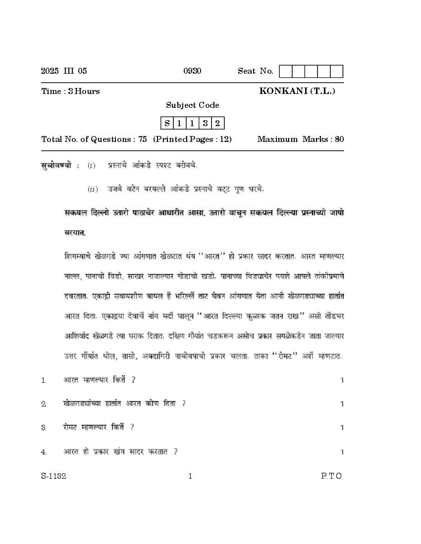 Goa Board Class 10 Question Paper 2025 Konkani TL View Download