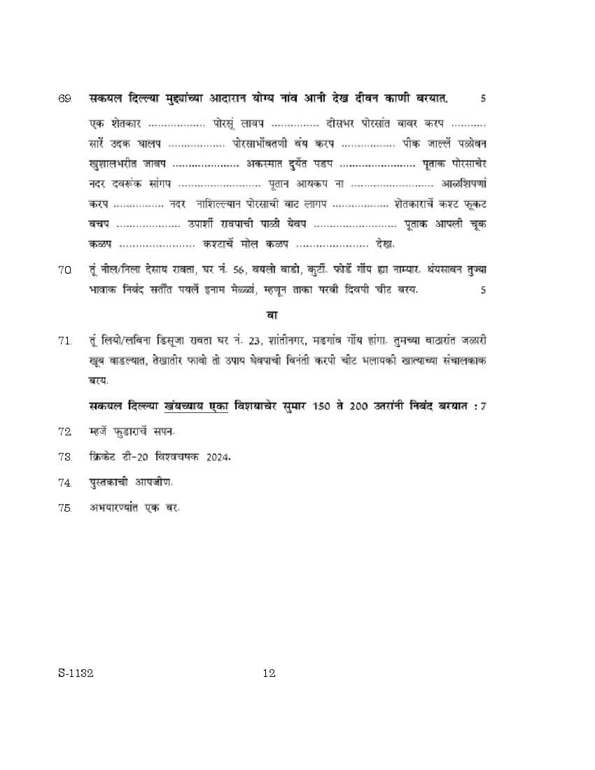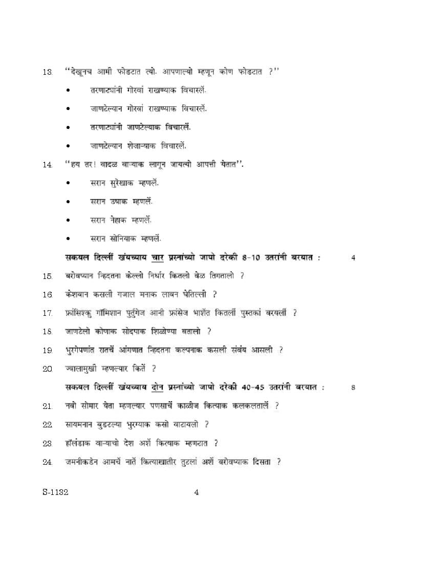 The previous year question paper of Goa board for class 10 (SSC) Konkani is as follows.
