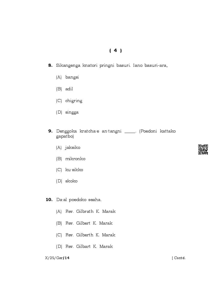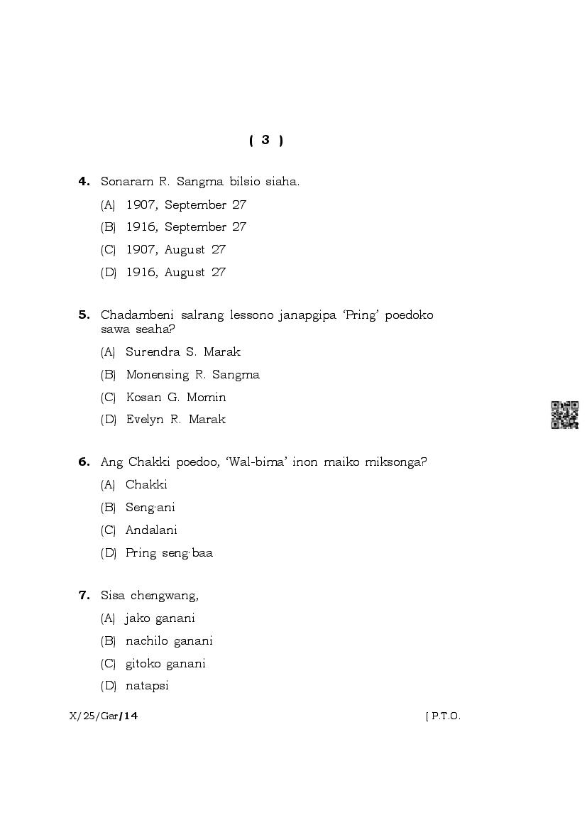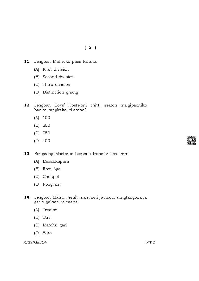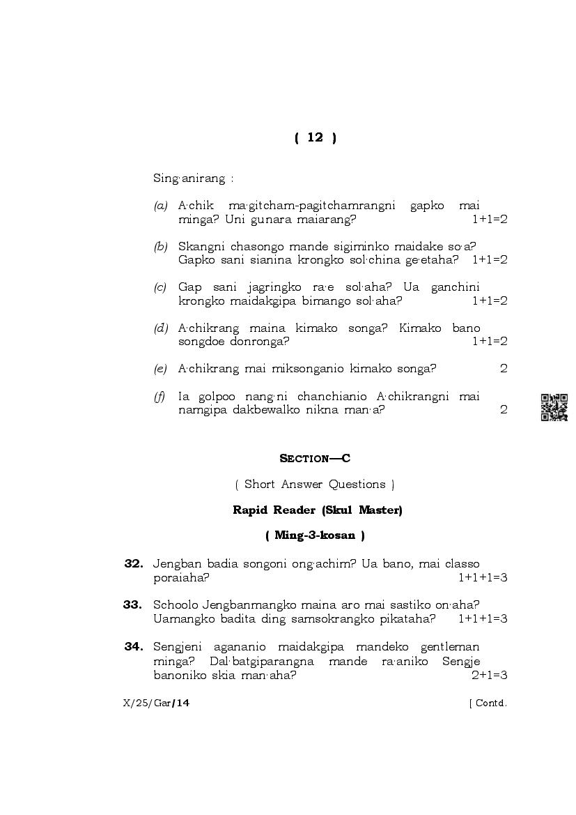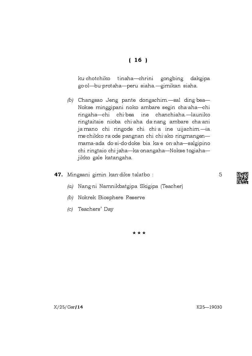 | Paper | Meghalaya Board Class 10 Question Paper of Garo |