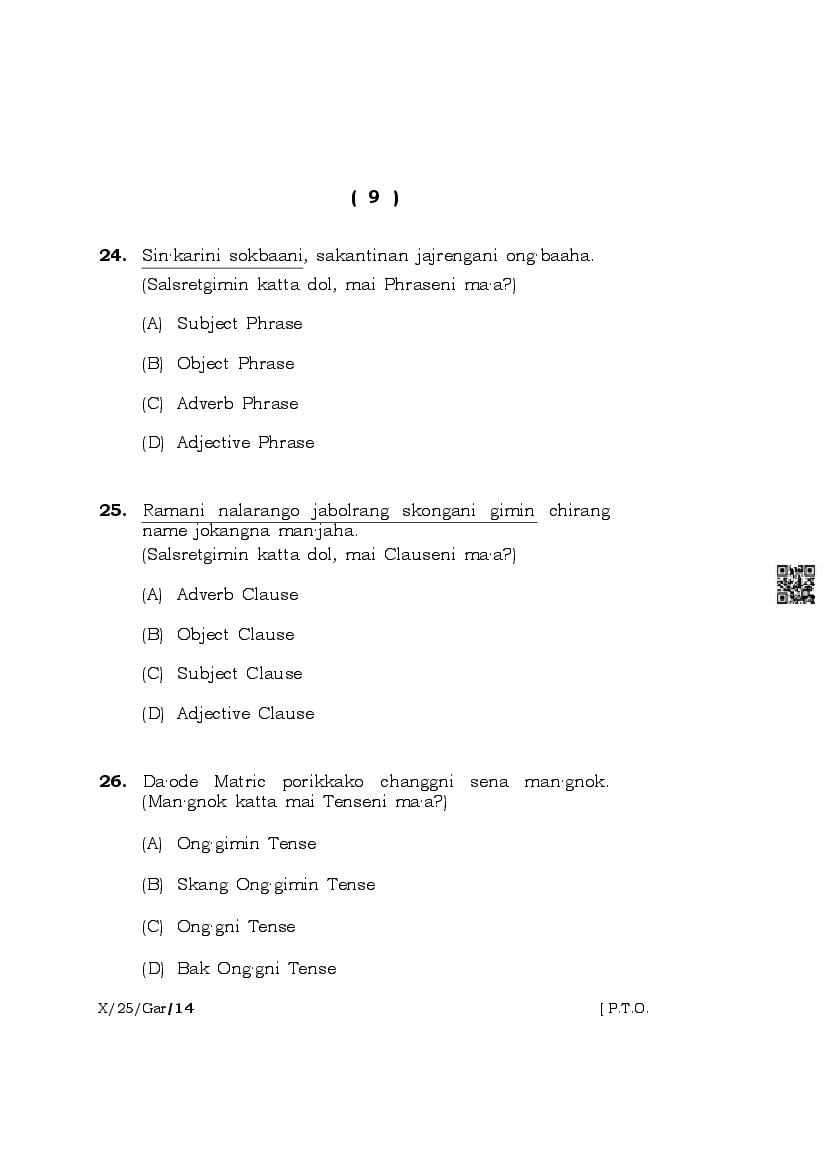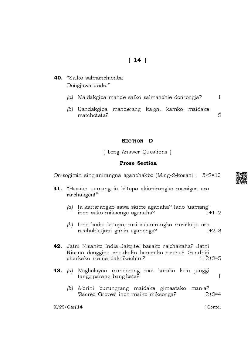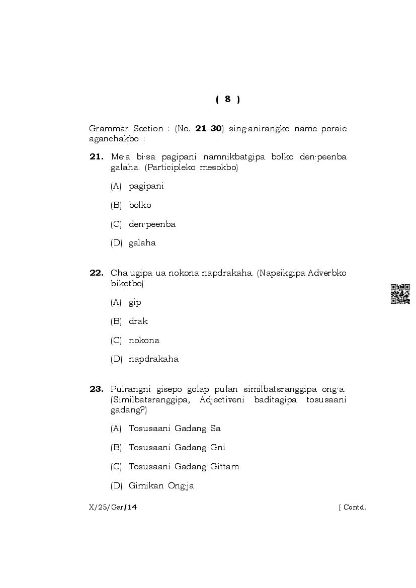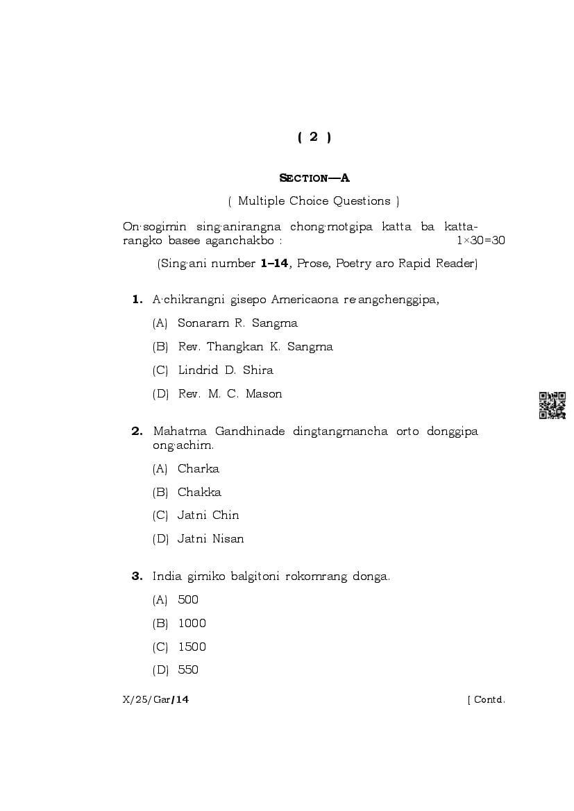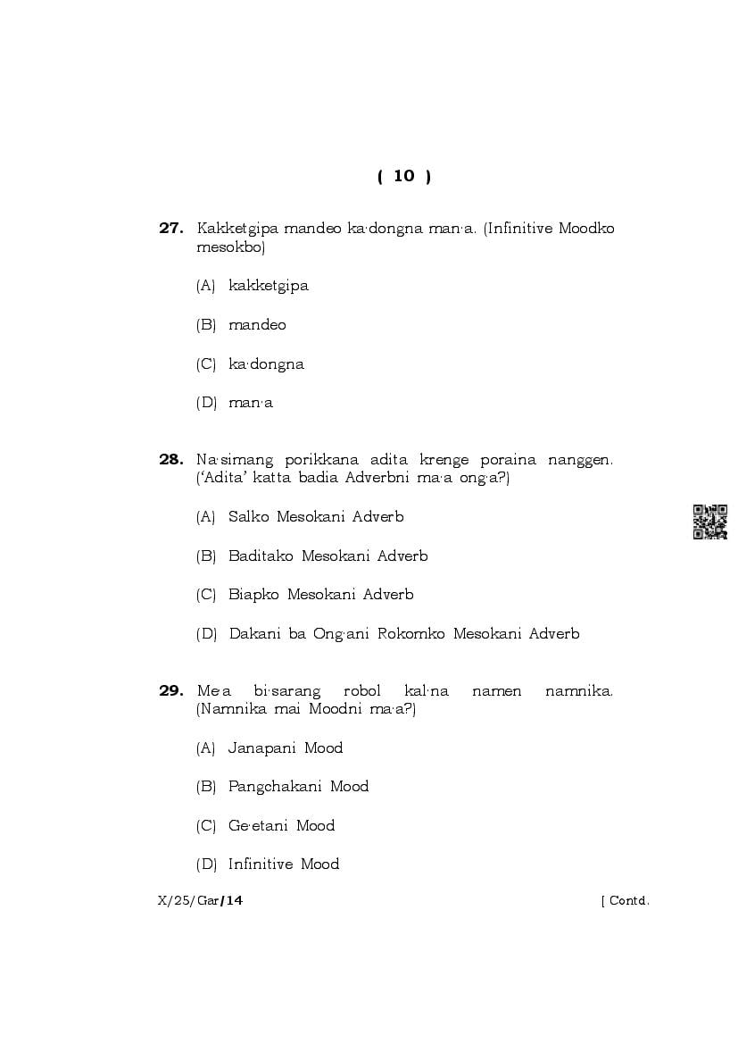 | Paper | Meghalaya Board Class 10 Question Paper of Garo |