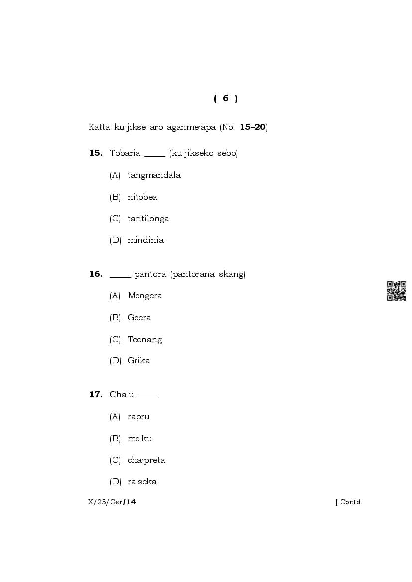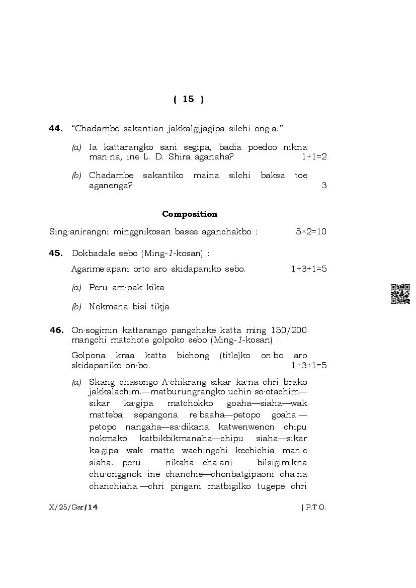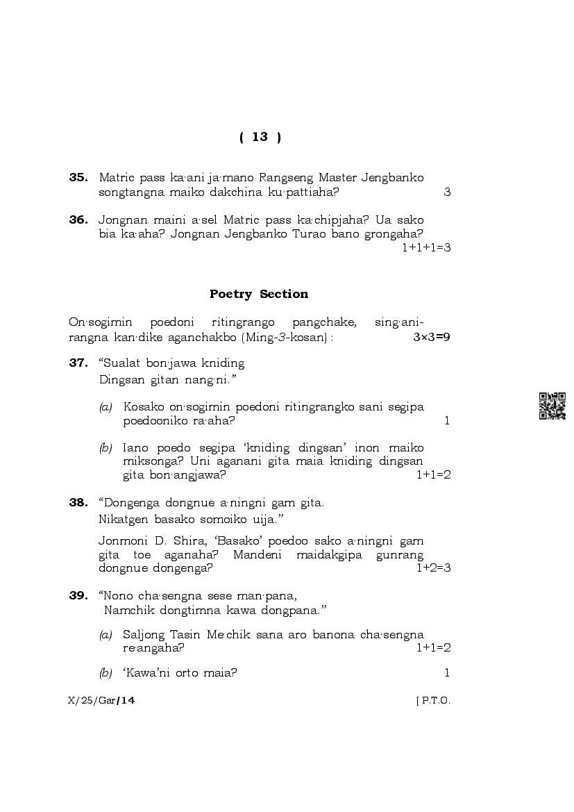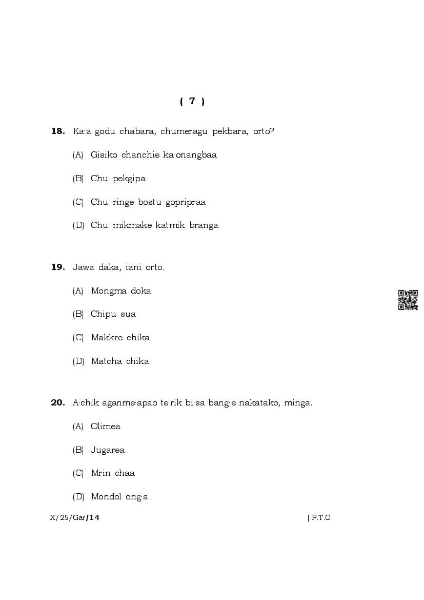 The complete class 10 question paper for Garo subject is as follows.