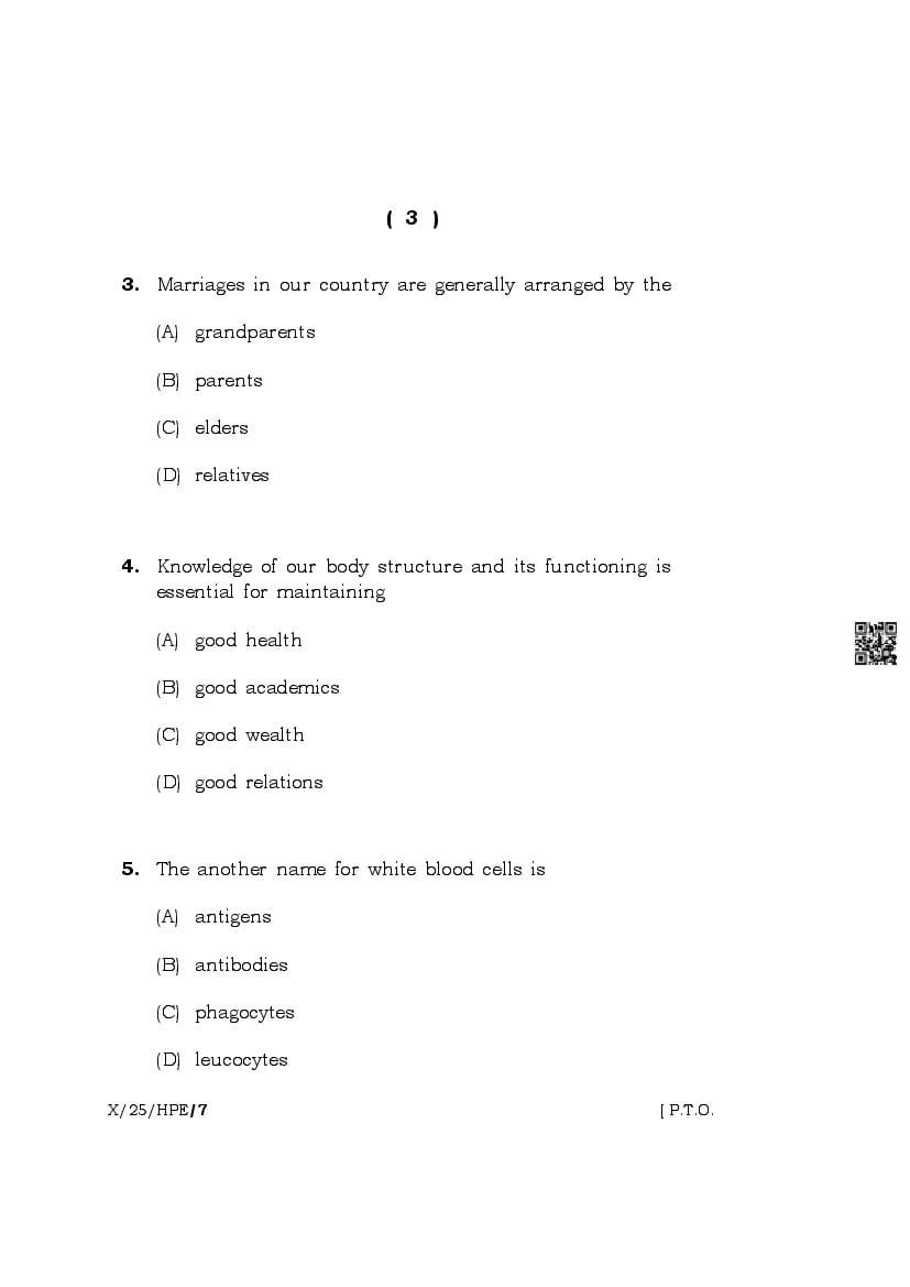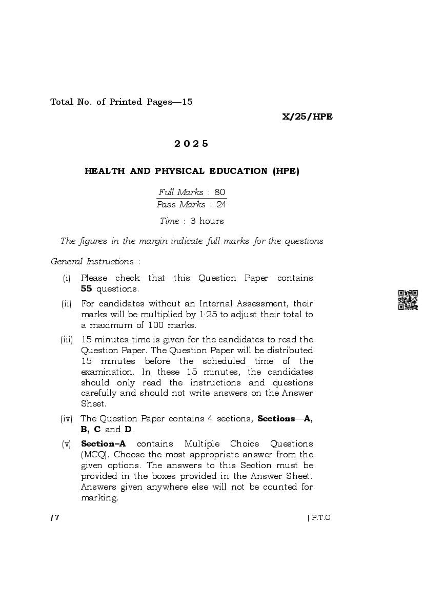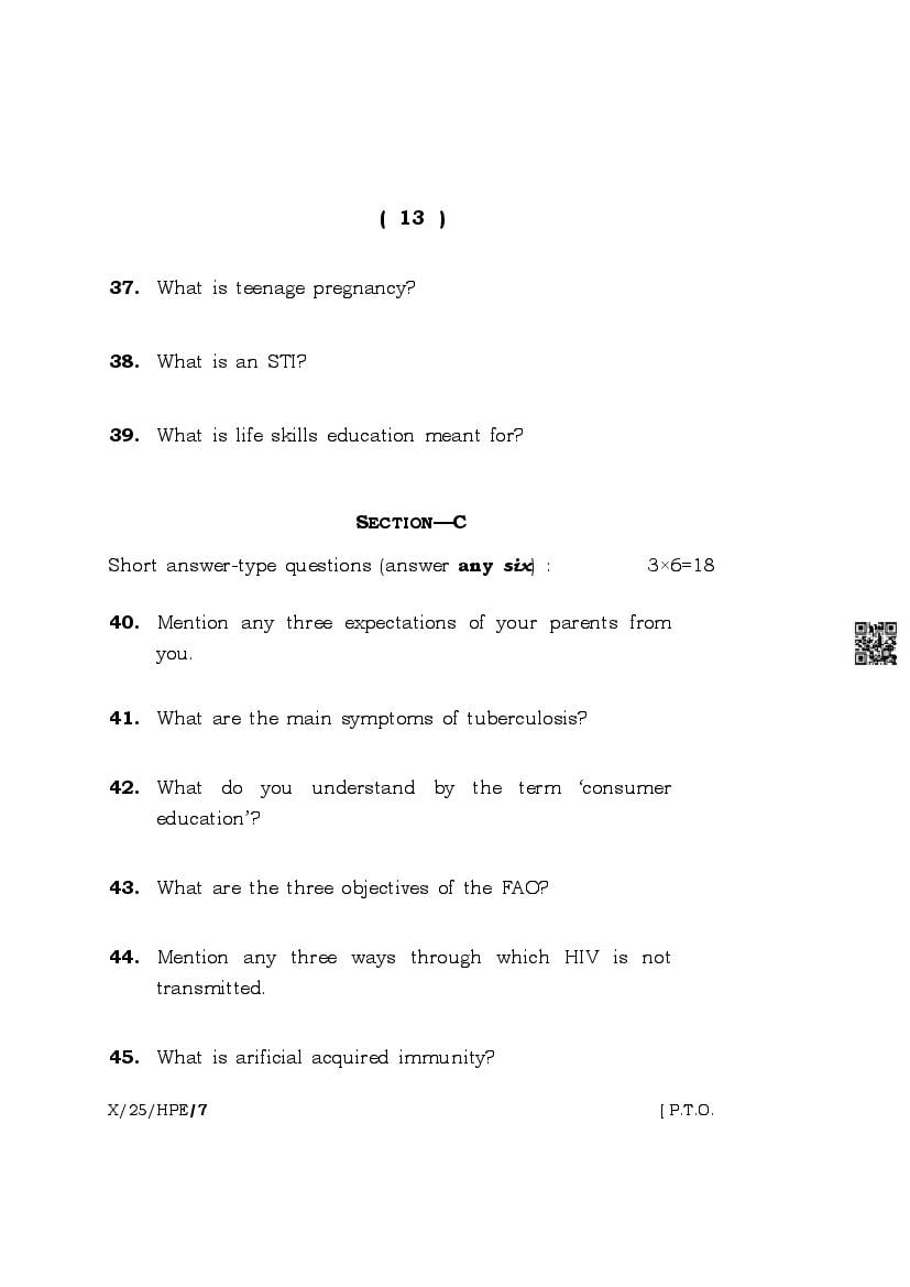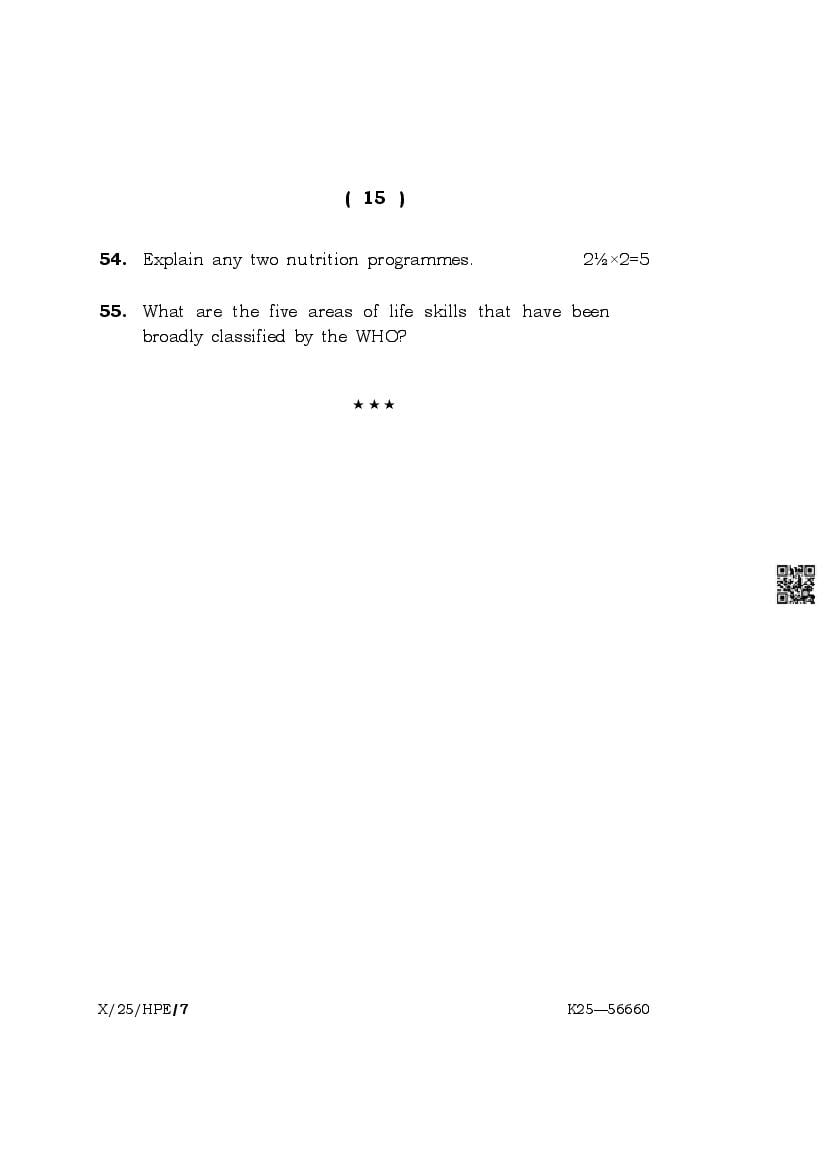 The complete class 10 question paper for Health And Physical Education subject is as follows.
