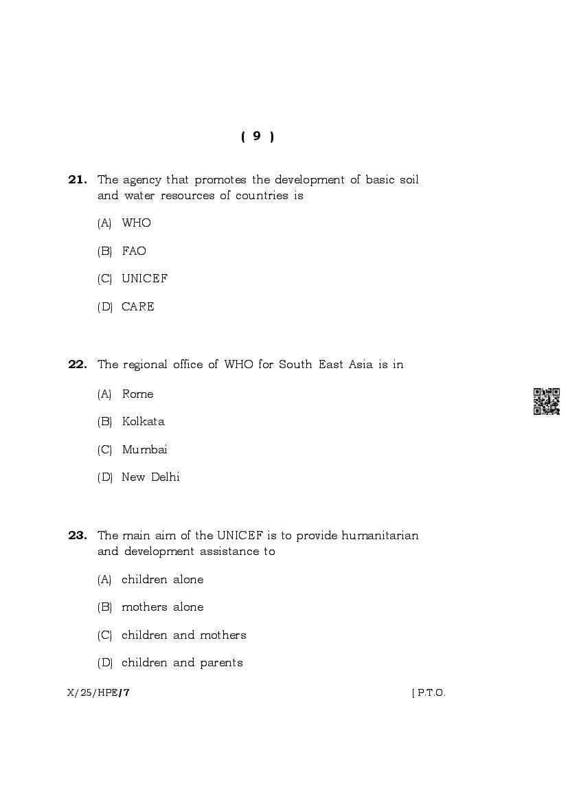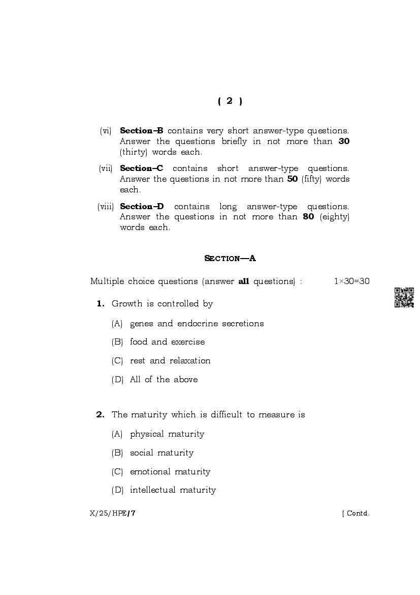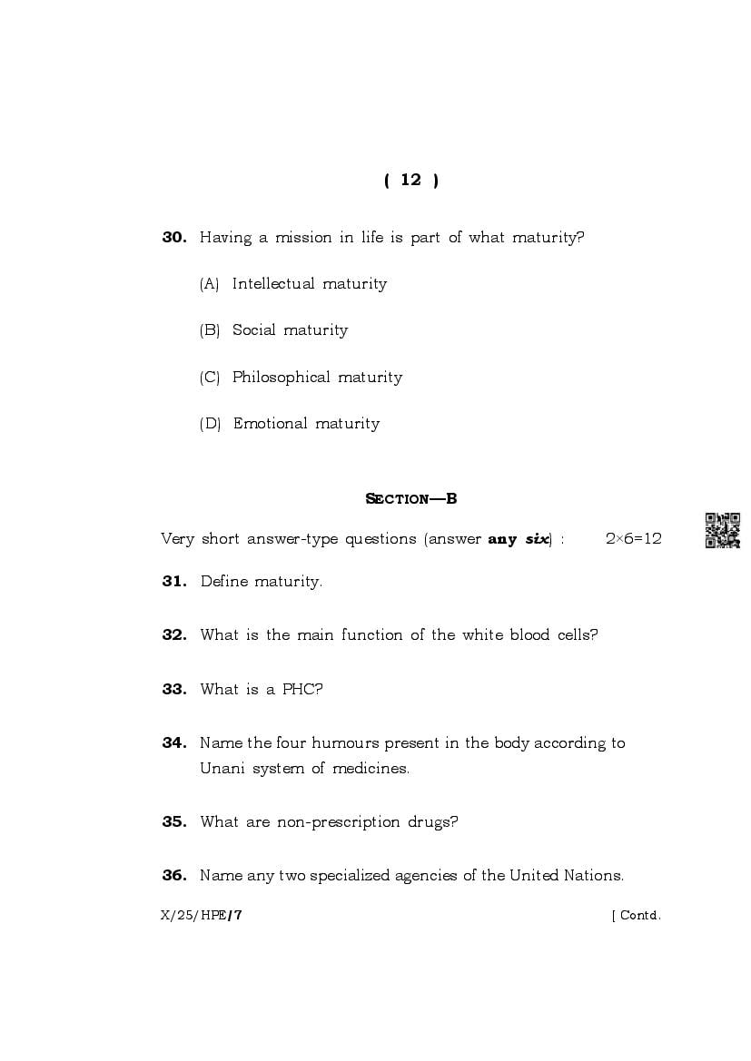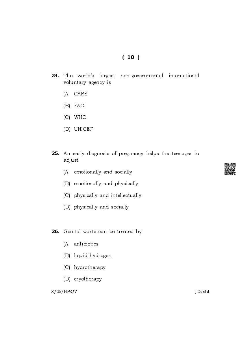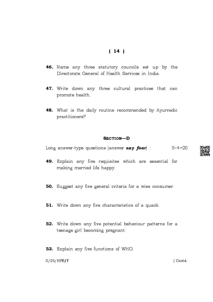 The complete class 10 question paper for Health And Physical Education subject is as follows.