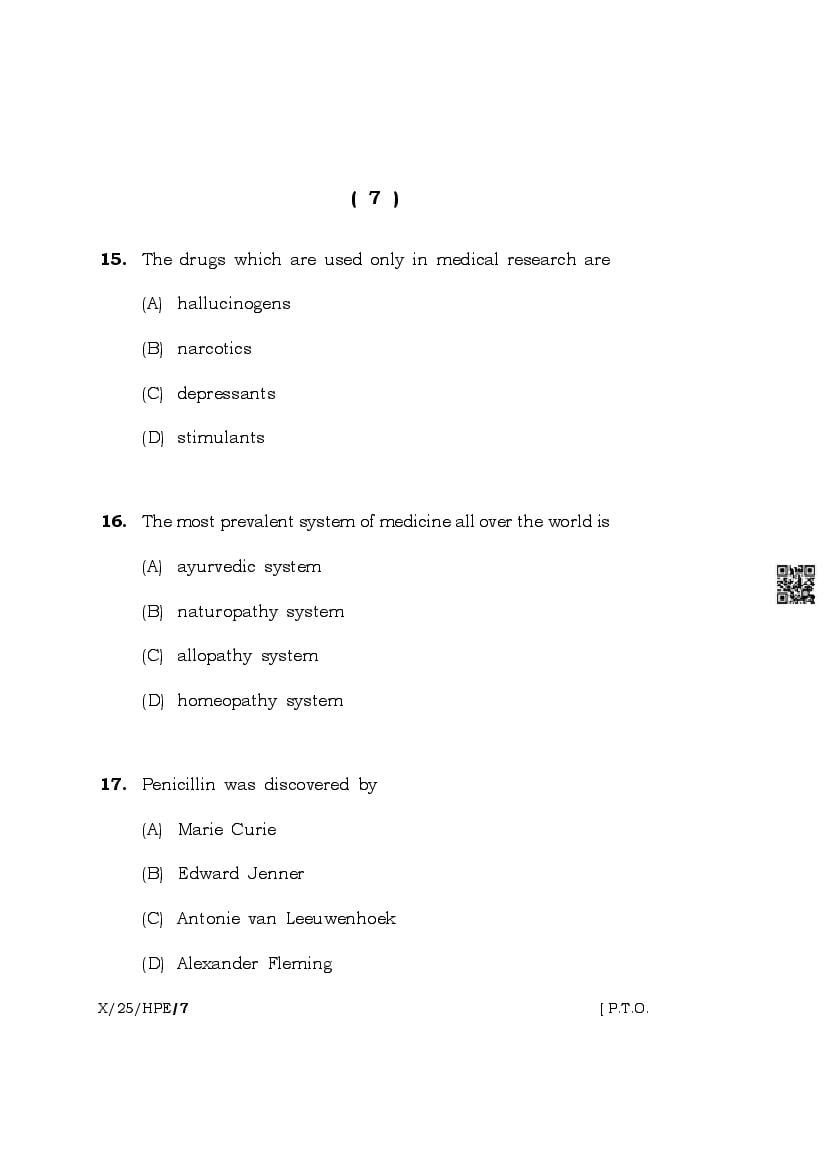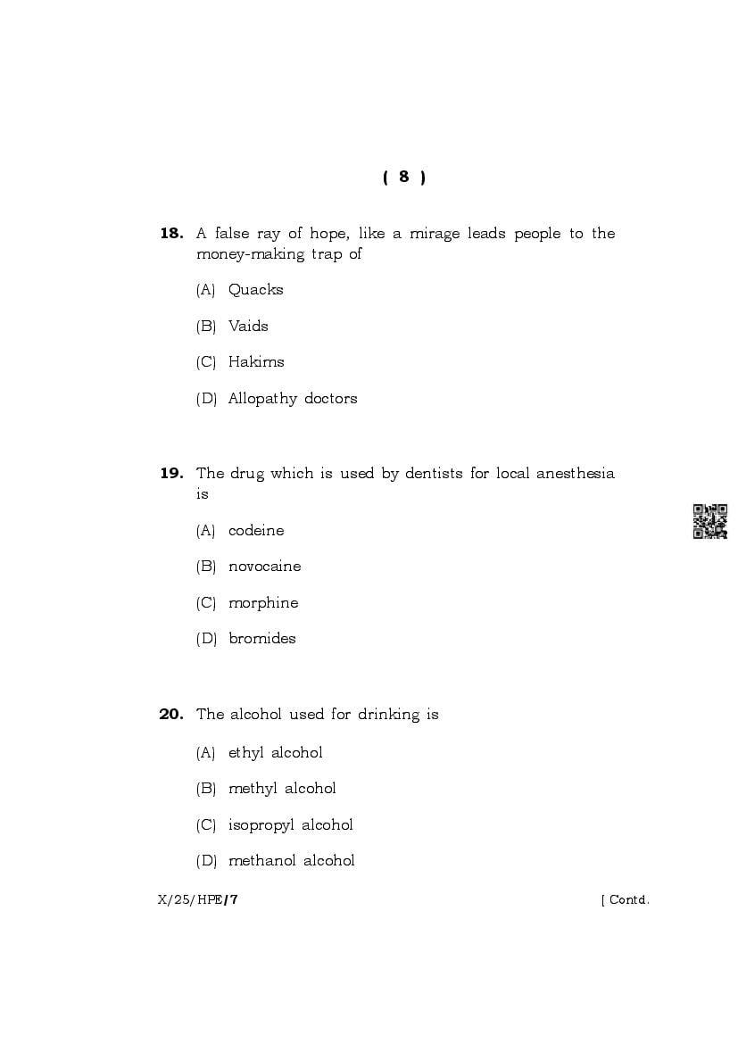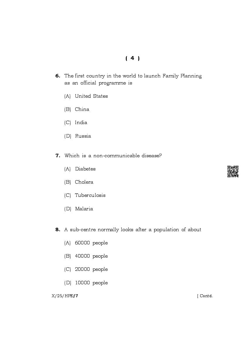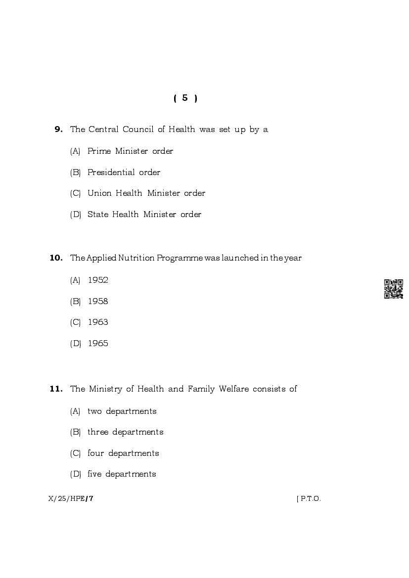 The complete class 10 question paper for Health And Physical Education subject is as follows.