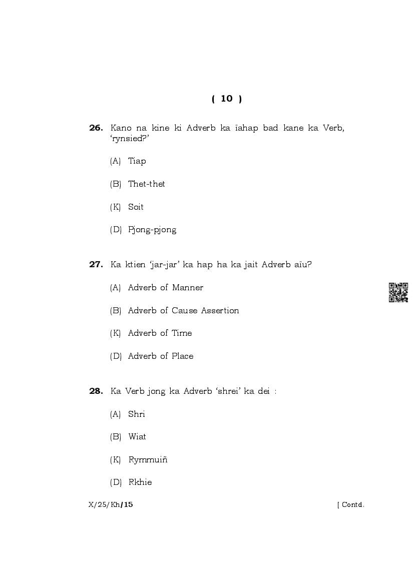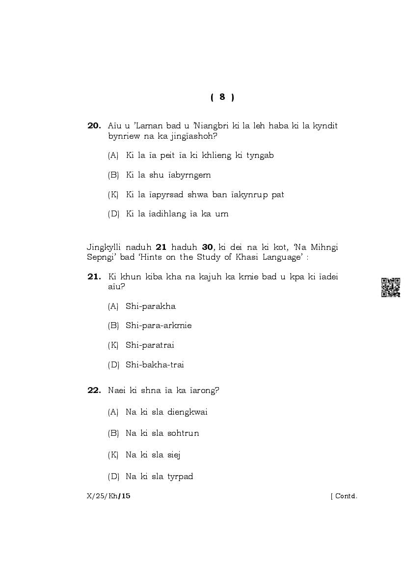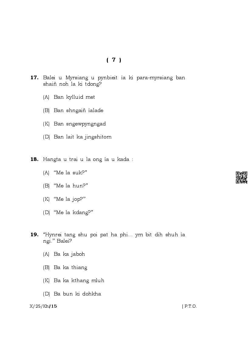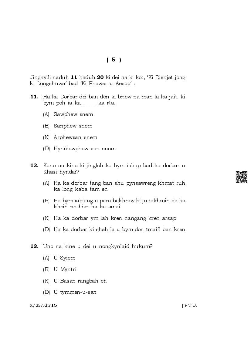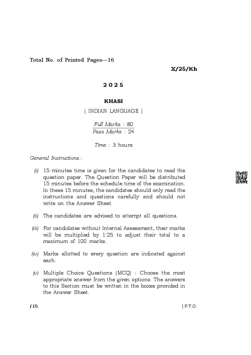 | Paper | Meghalaya Board Class 10 Question Paper of Khasi |