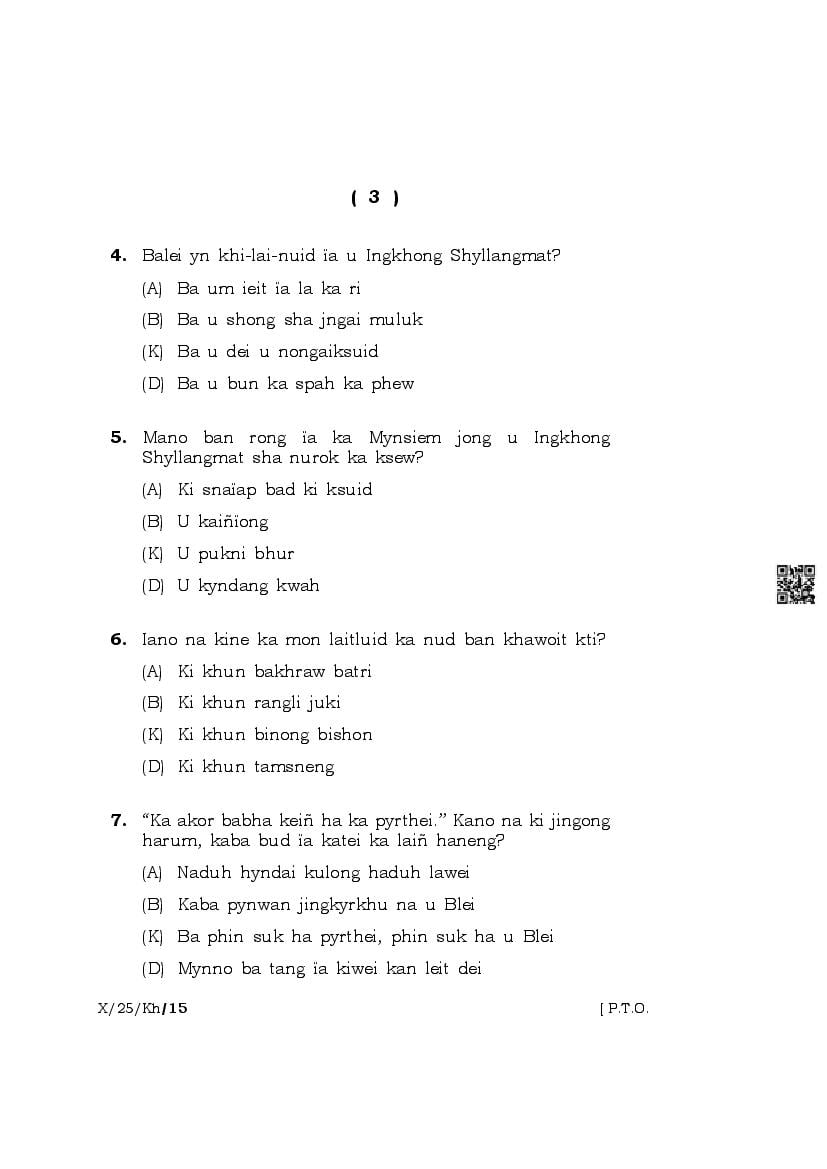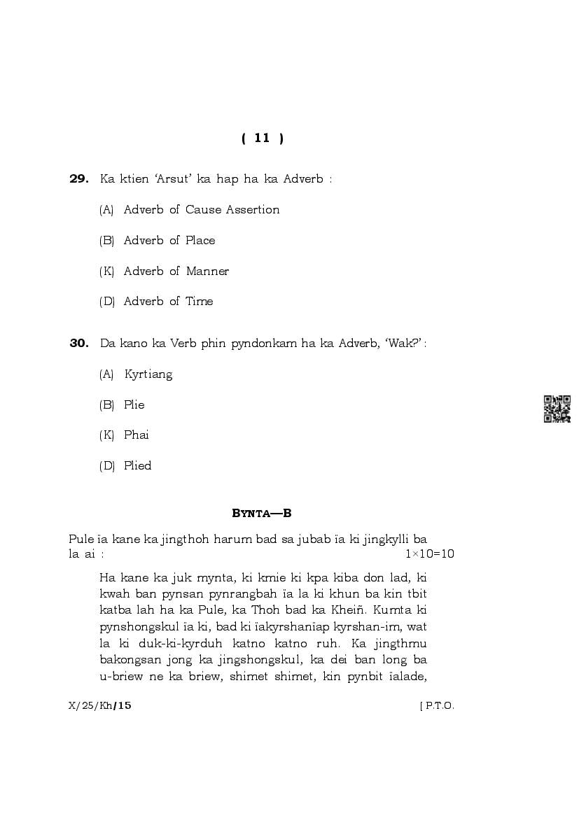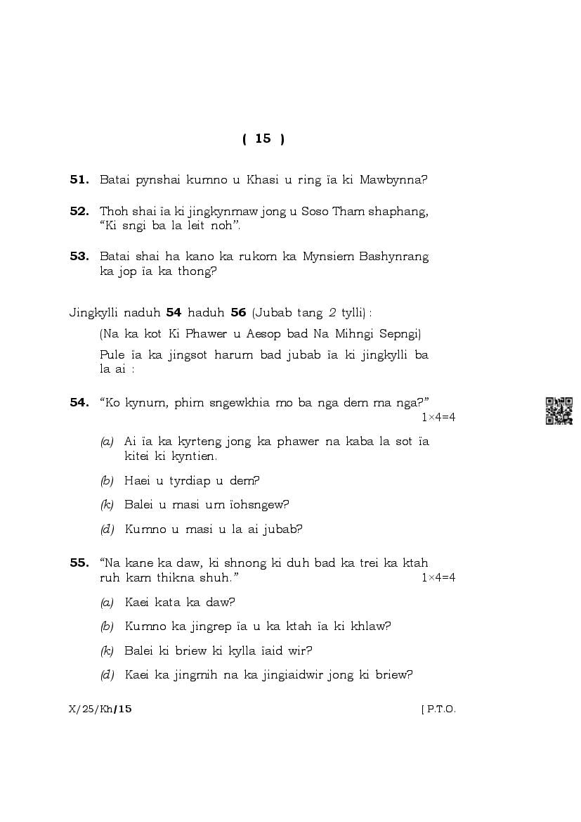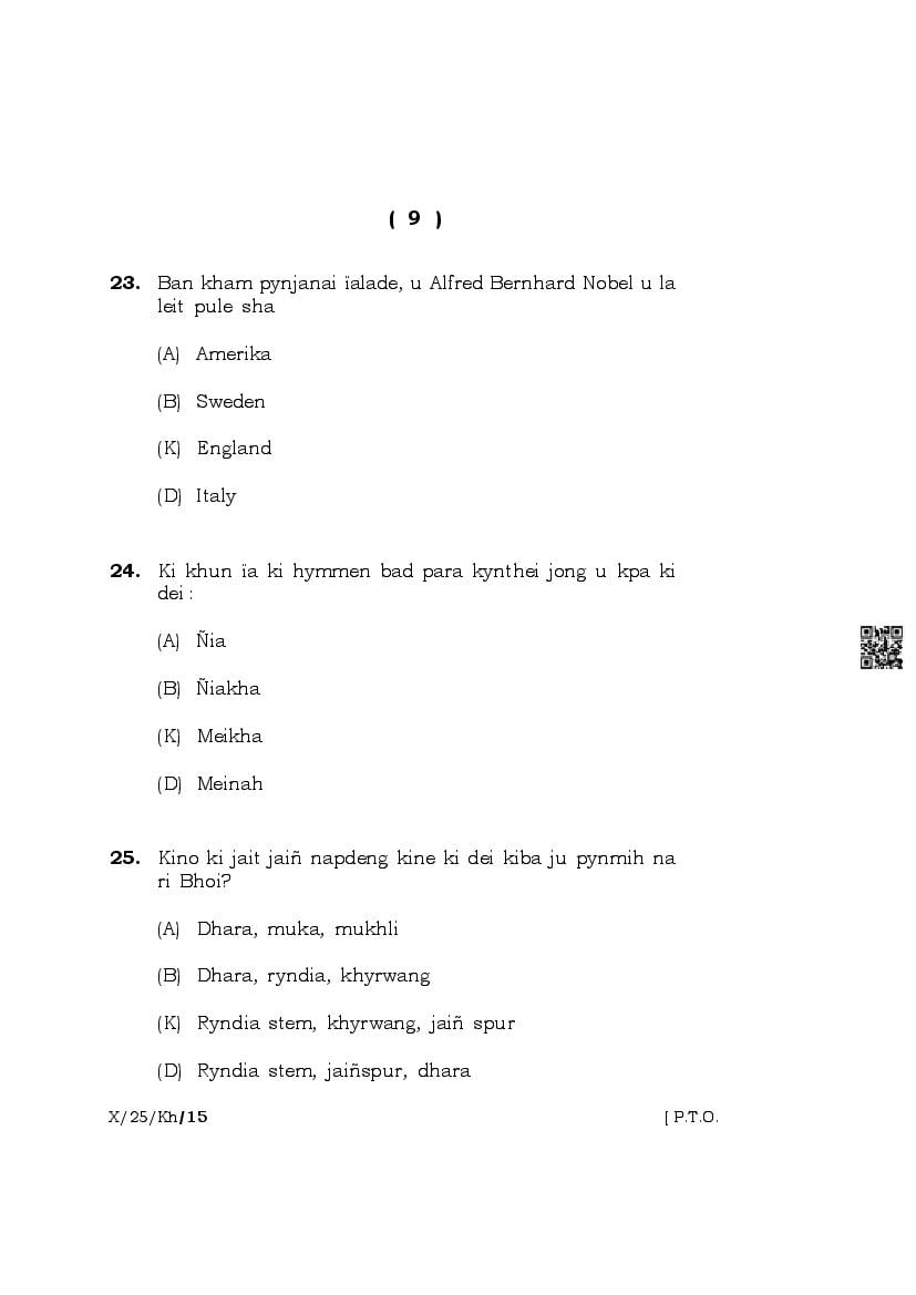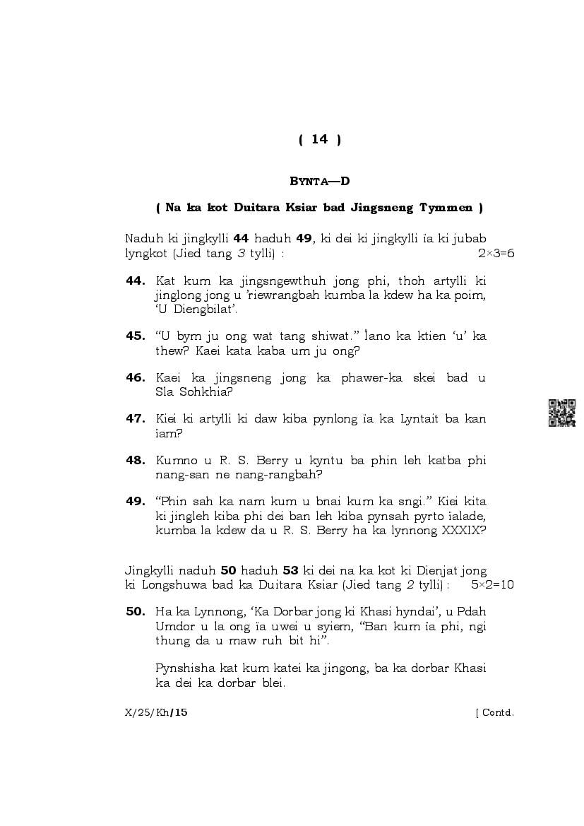 | Paper | Meghalaya Board Class 10 Question Paper of Khasi |