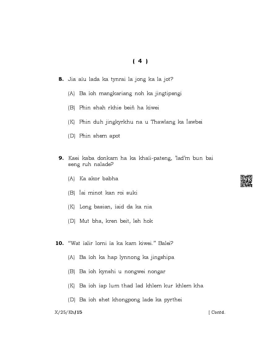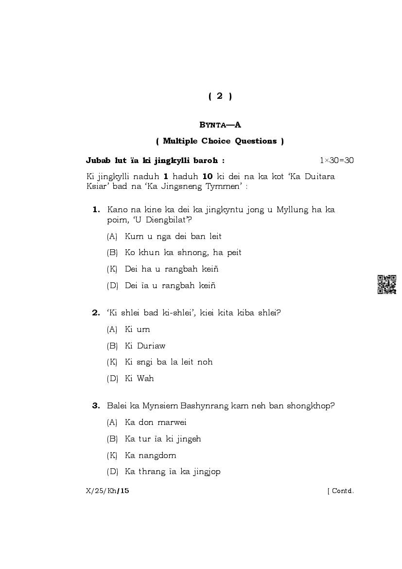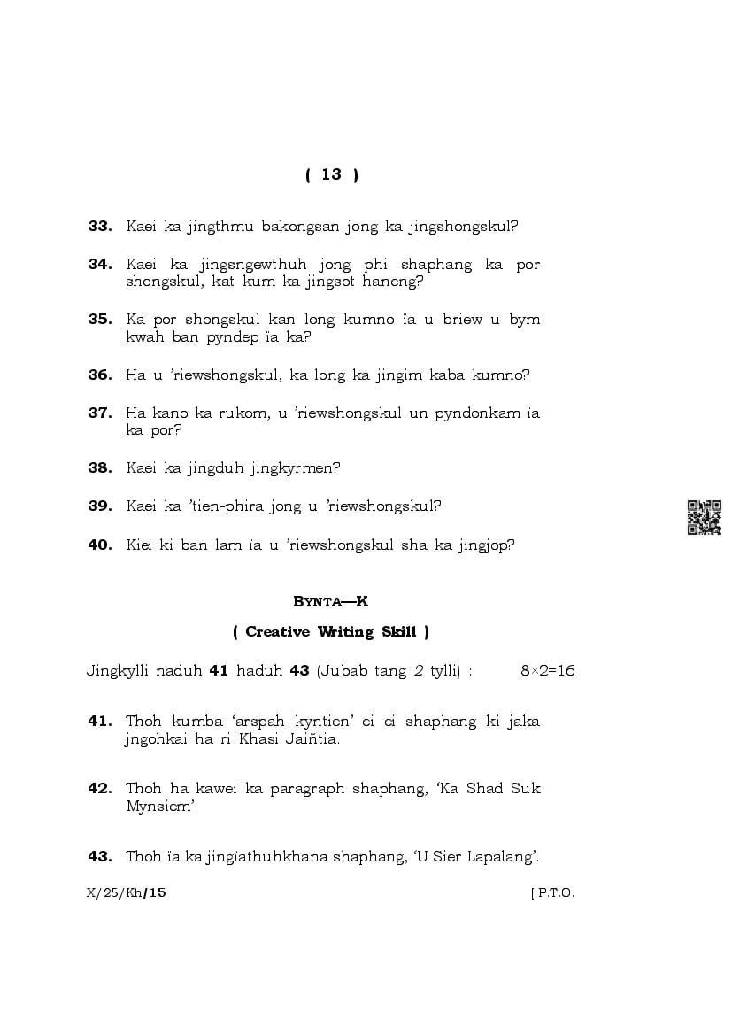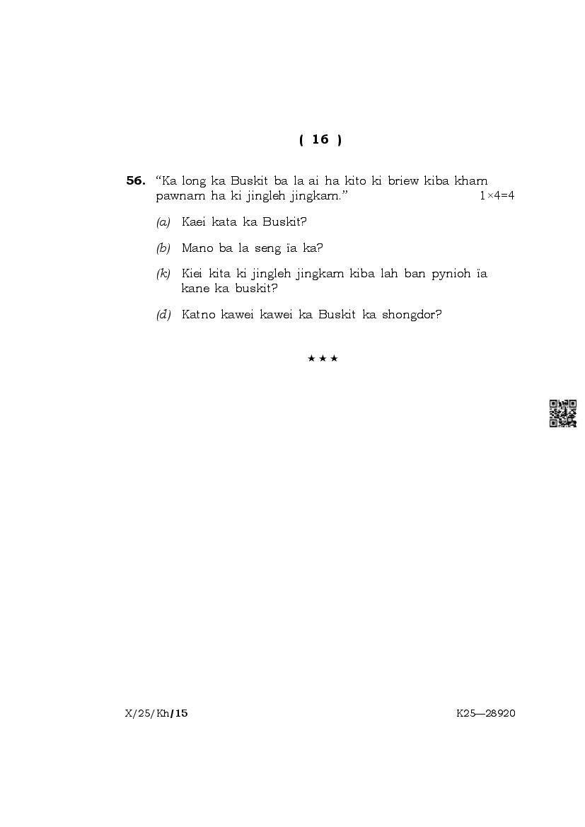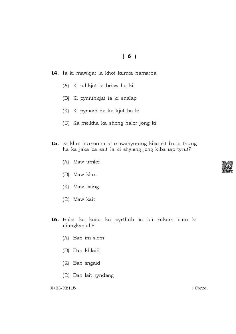 | Paper | Meghalaya Board Class 10 Question Paper of Khasi |