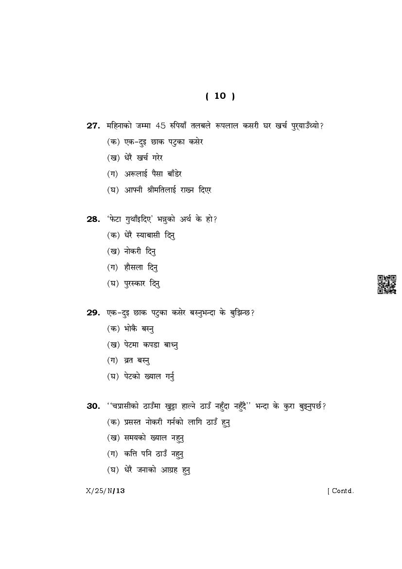 Meghalaya Board (MBOSE) Class 10 Question Paper 2025 for Nepali