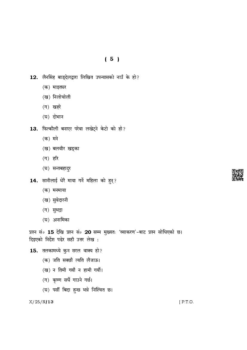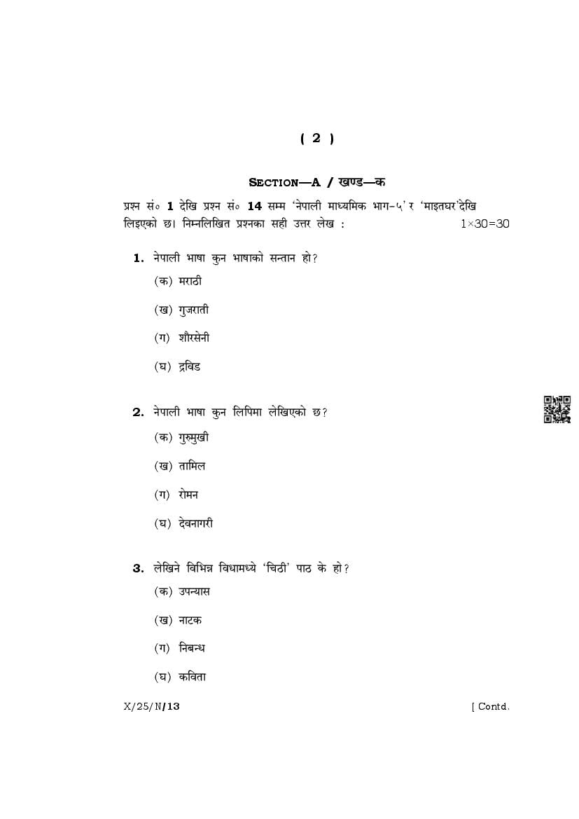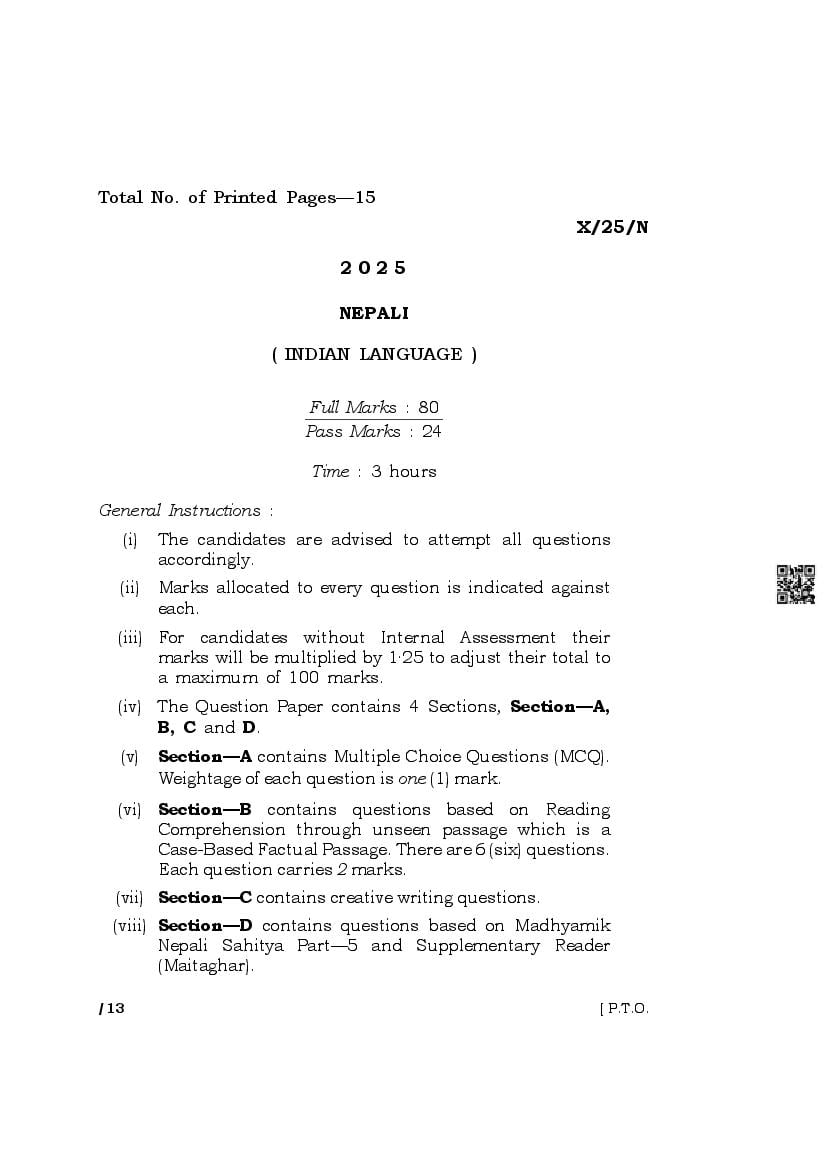MBOSE SSLC Nepali Question Paper 2025 PDF