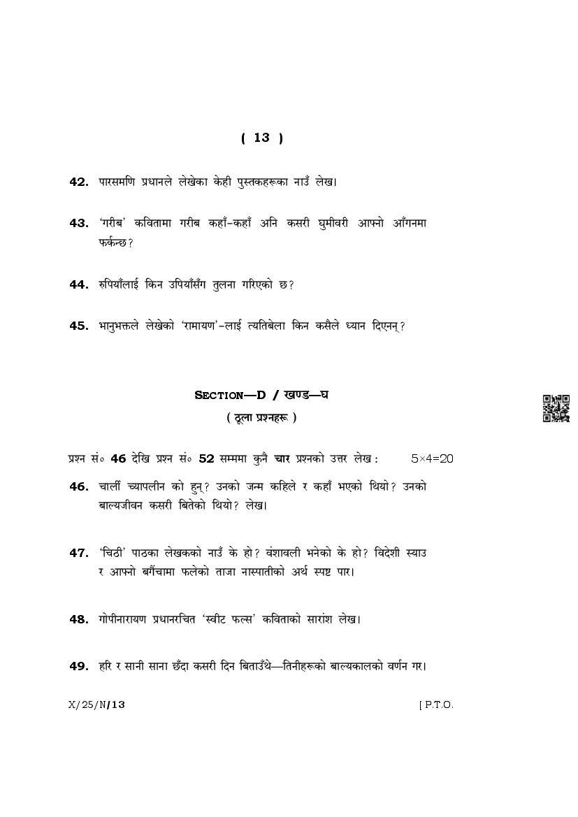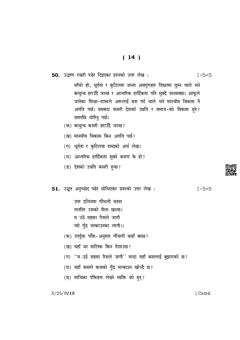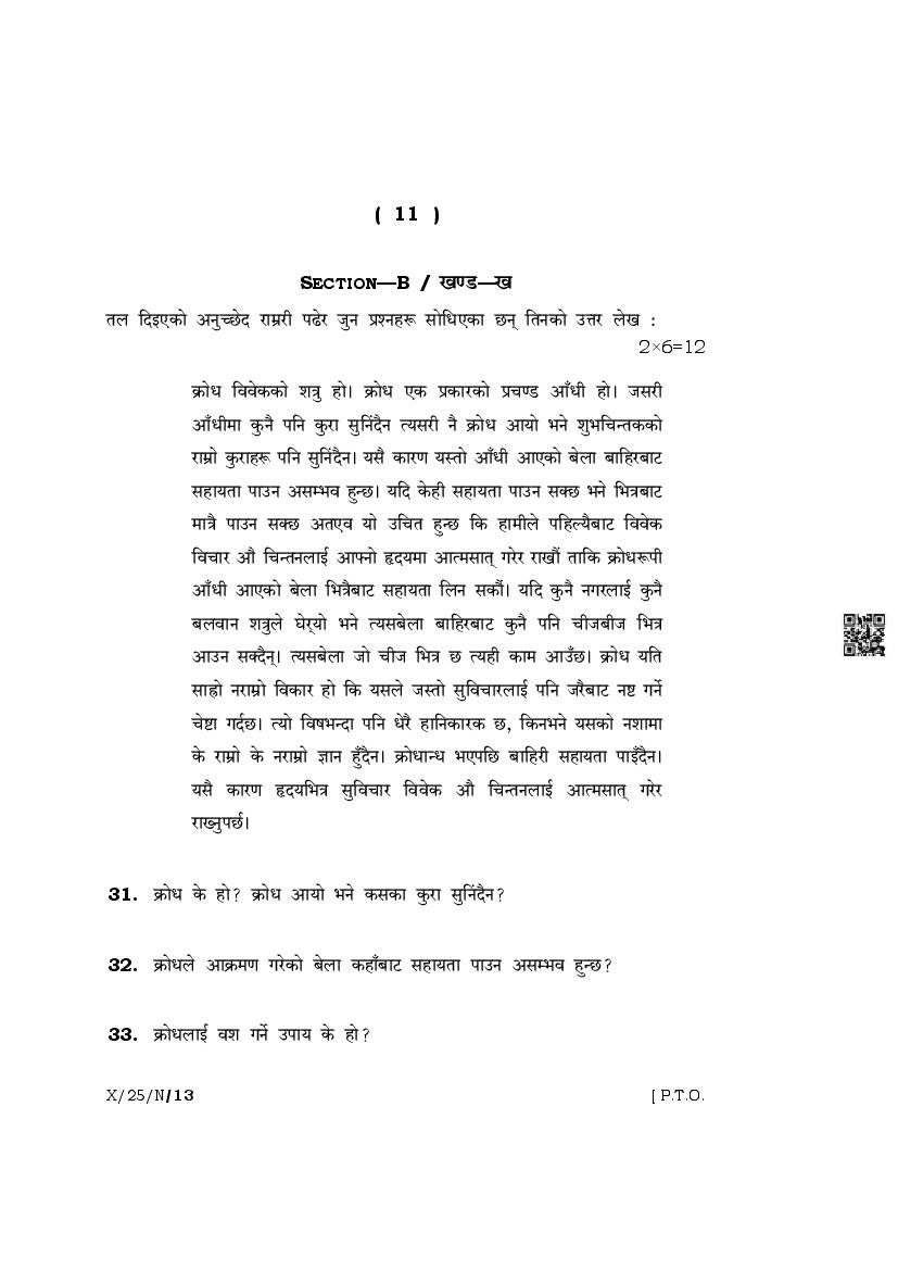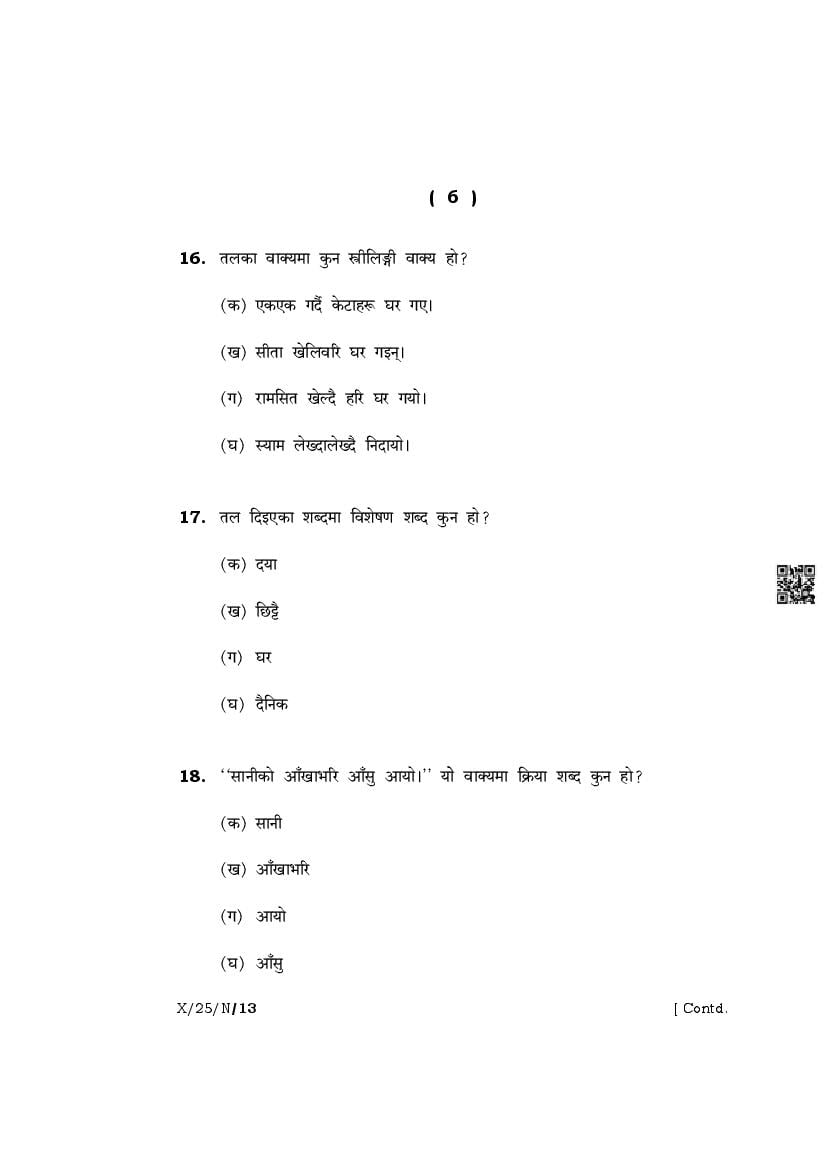 MBOSE SSLC Nepali Question Paper 2025 PDF