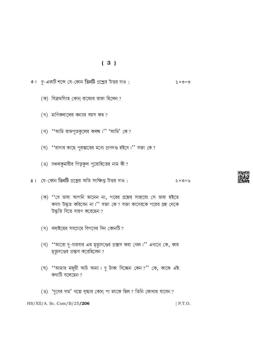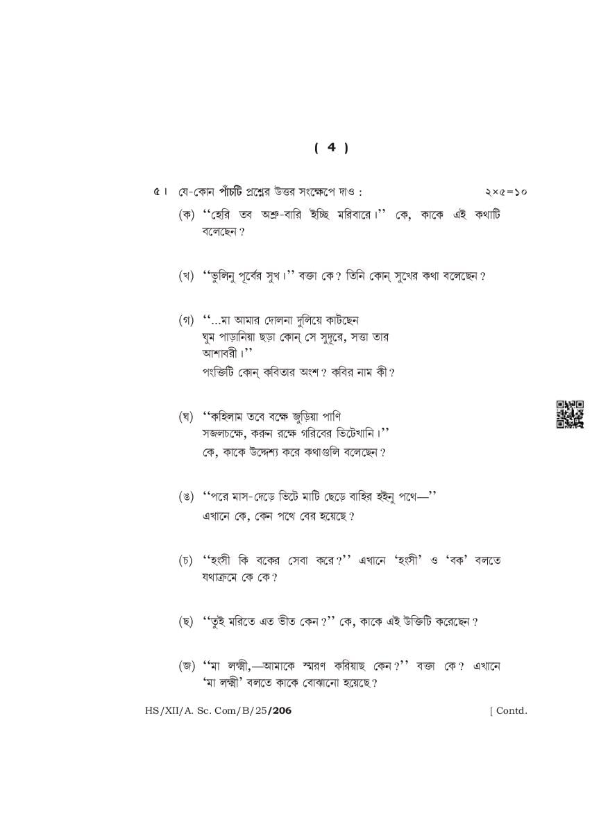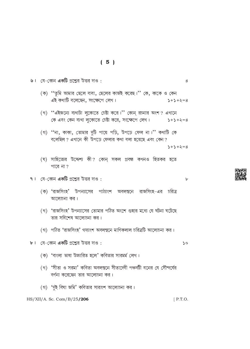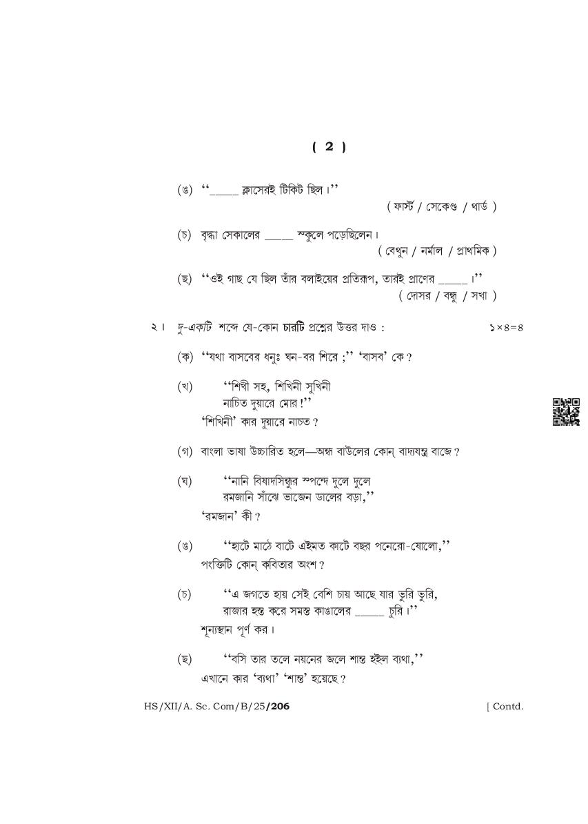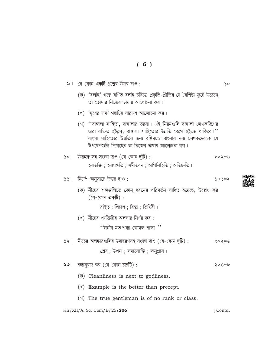 The complete class 12 question paper for Bengali Mil subject is as follows.