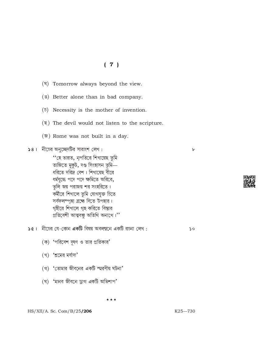 The important highlights of this HSSLC Bengali Mil question paper are as follows.