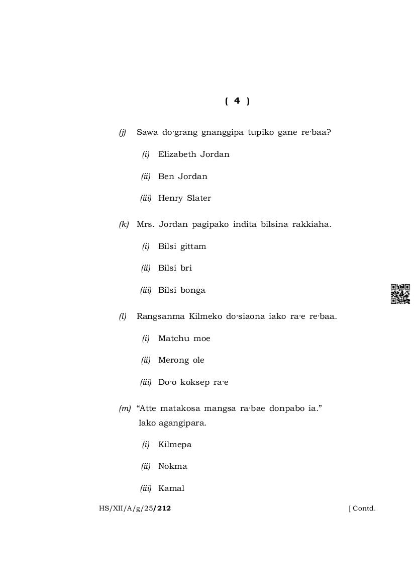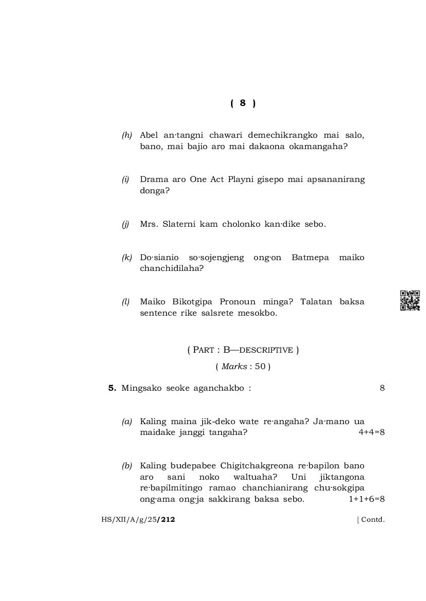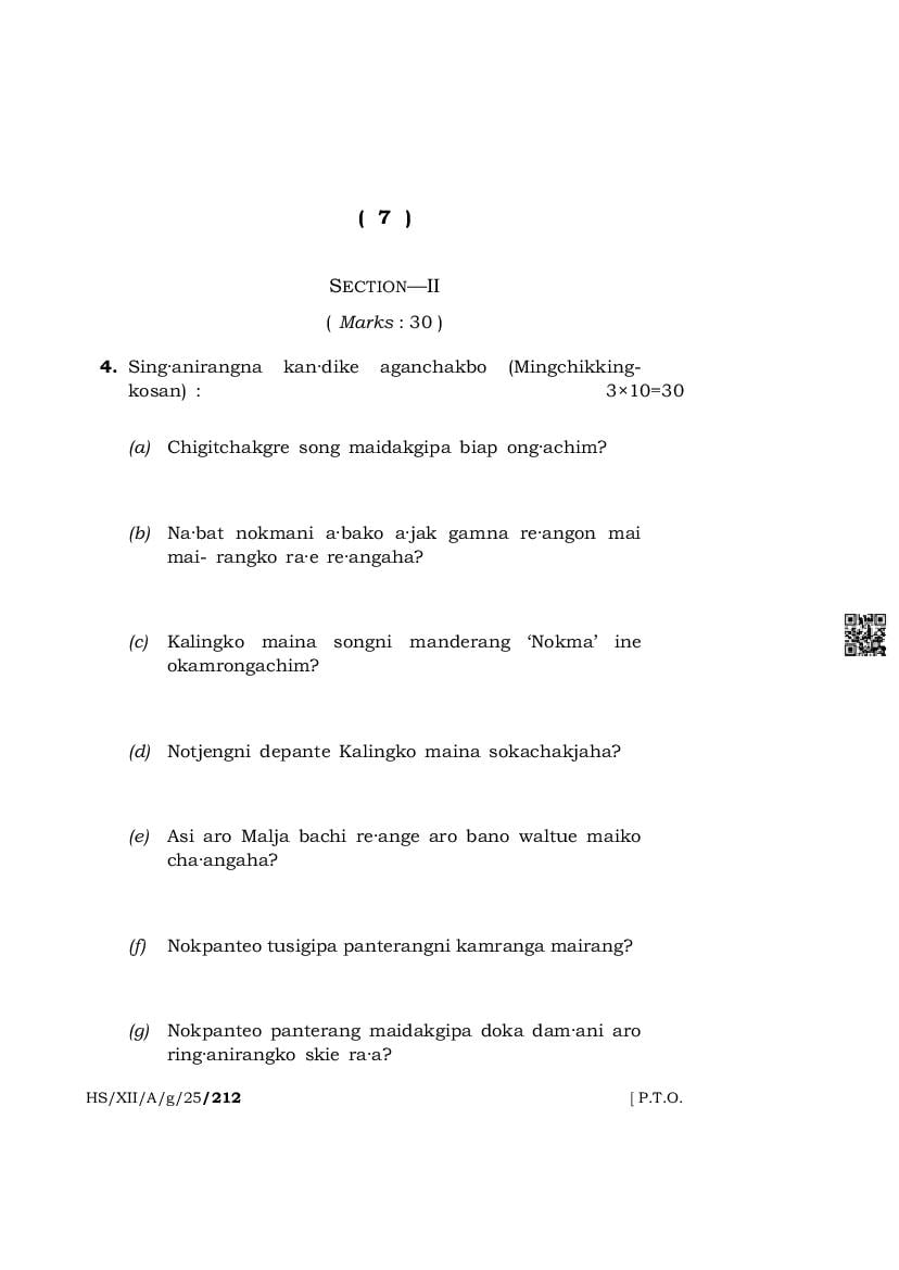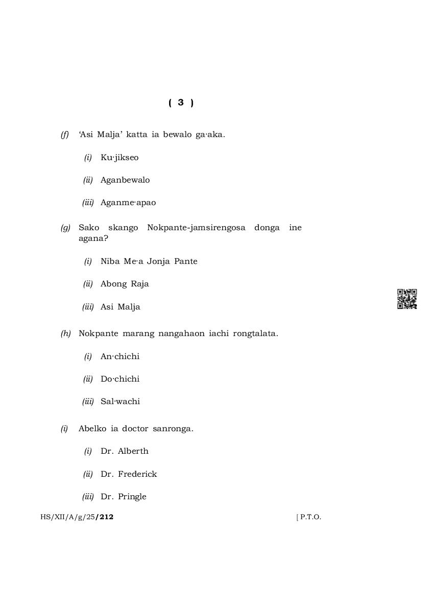 MBOSE Class 12 Question Paper 2025 for Garo Elective View Download