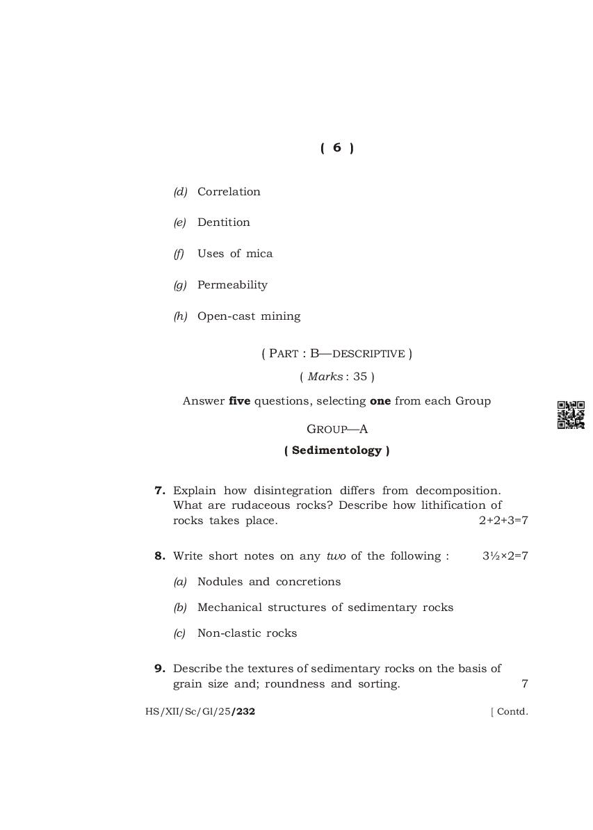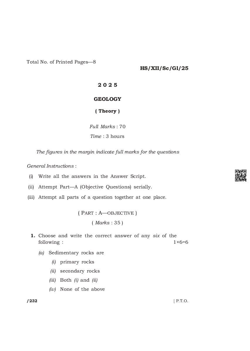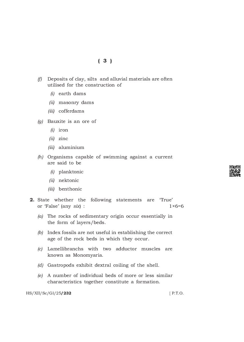 The complete class 12 question paper for Geology subject is as follows.