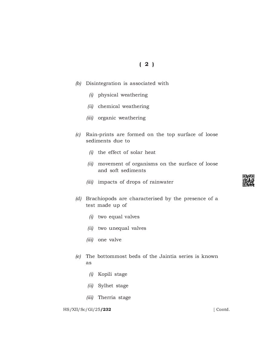 | Paper | Meghalaya Board Class 12 Question Paper of Geology |