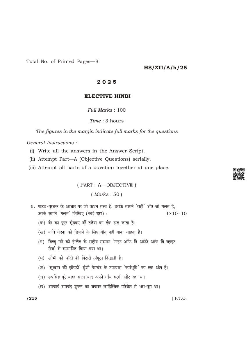 | Subject | Hindi Elective |