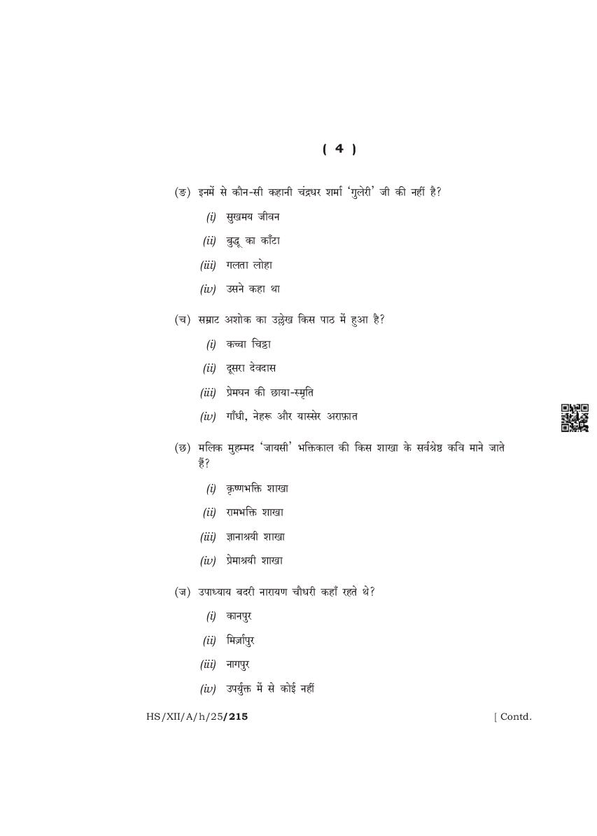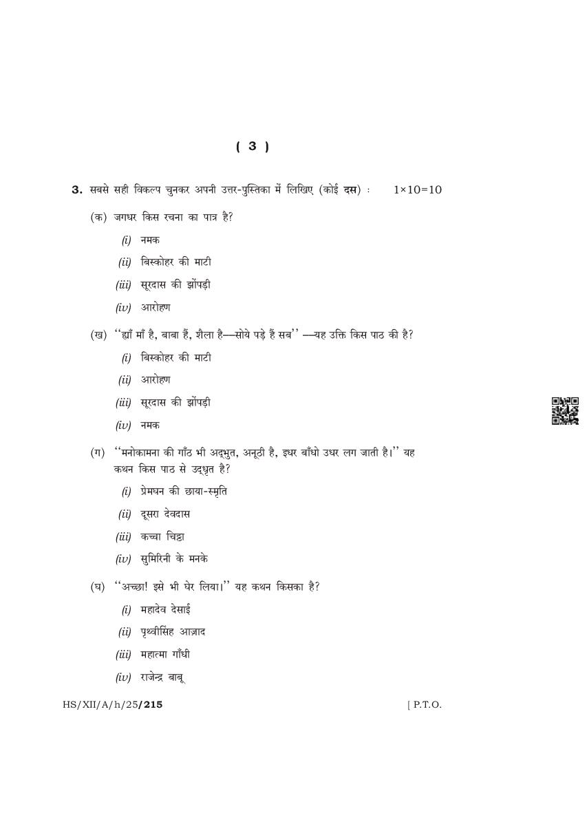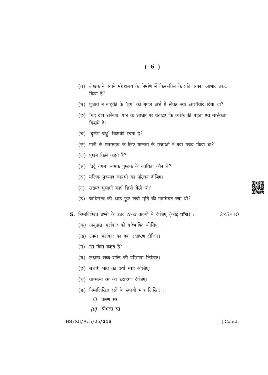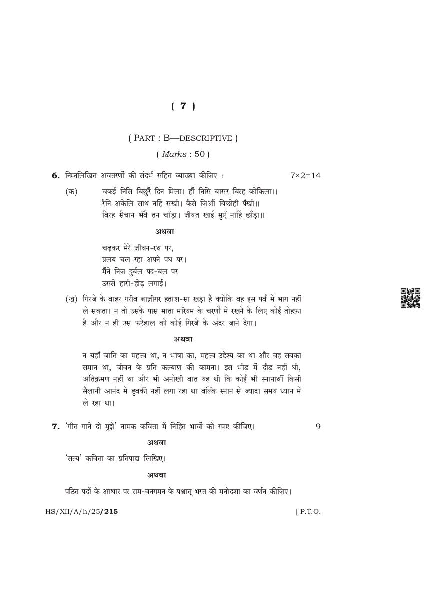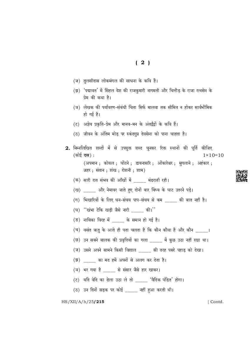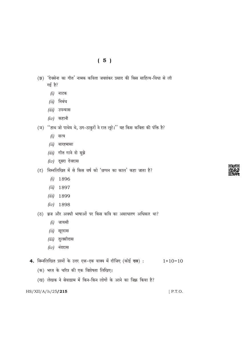 The complete class 12 question paper for Hindi Elective subject is as follows.