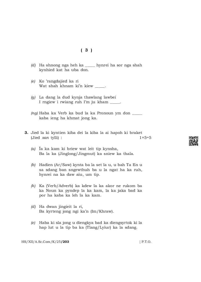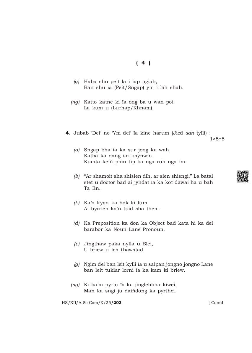 The complete class 12 question paper for Khasi Mil subject is as follows.