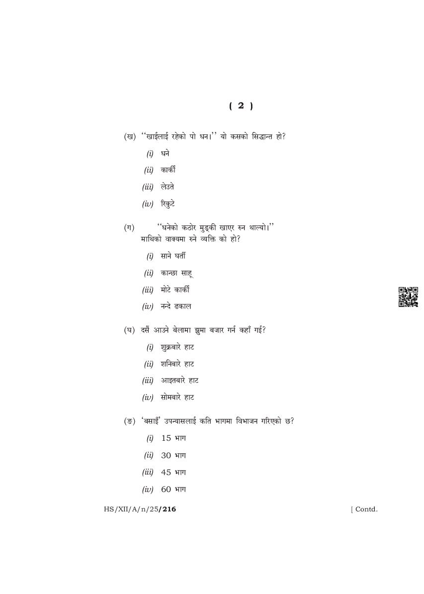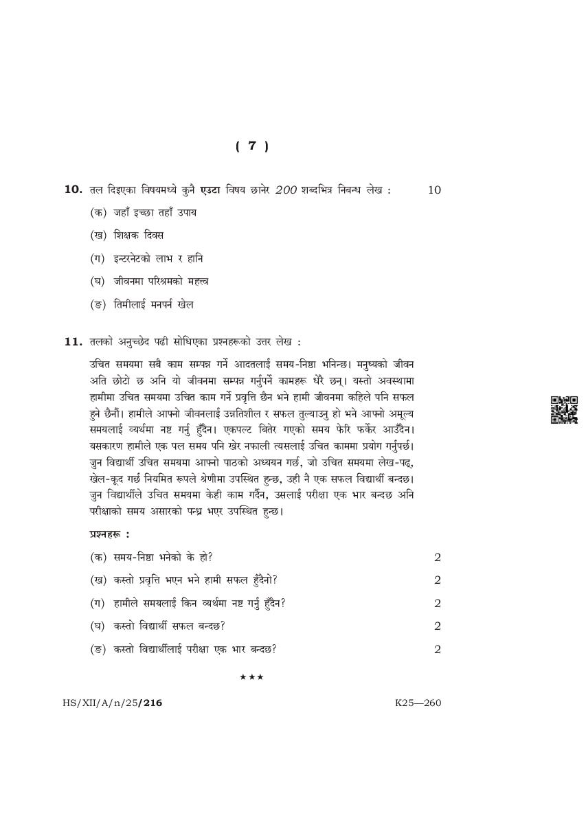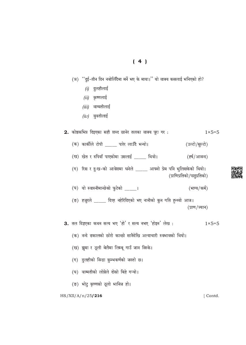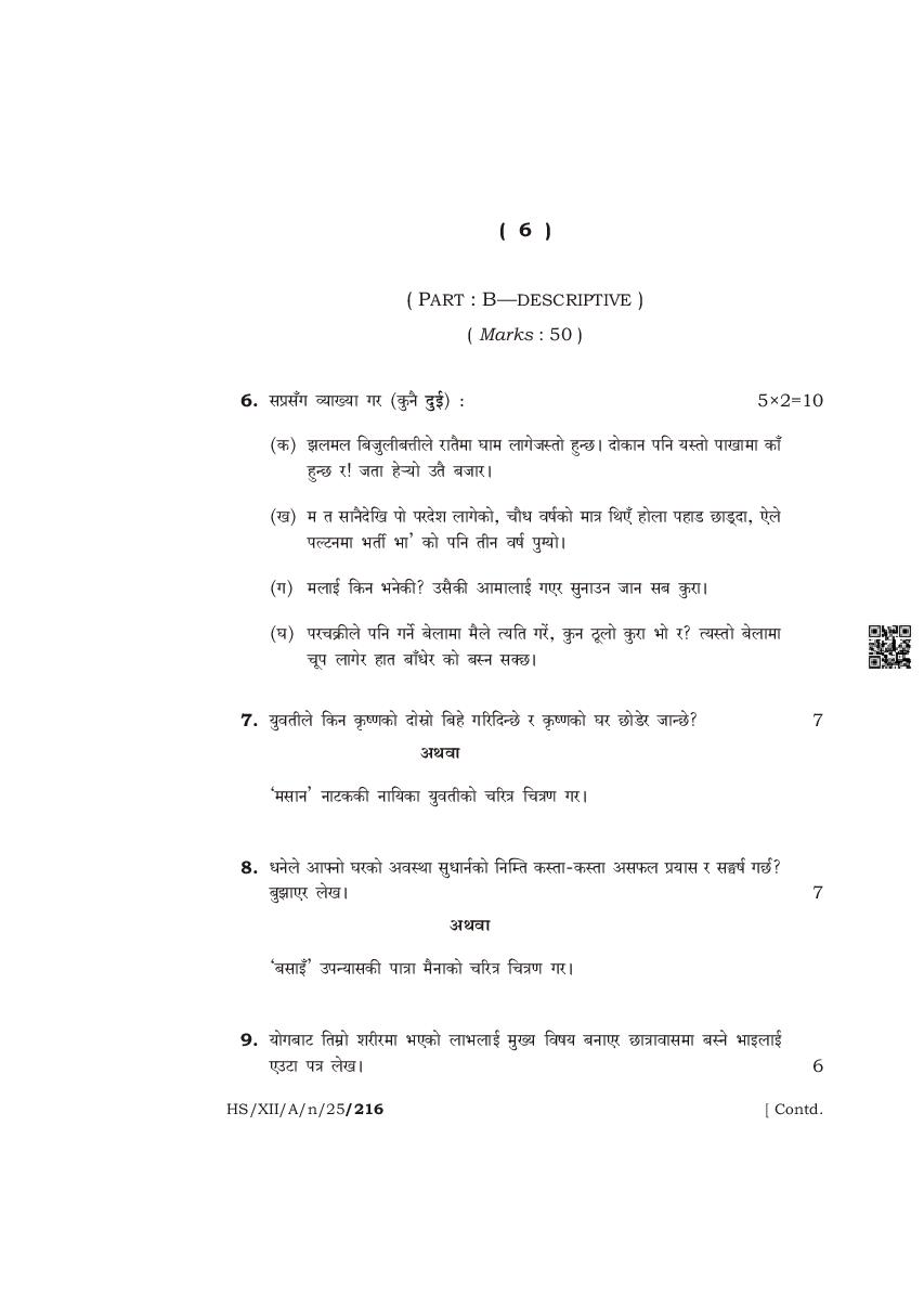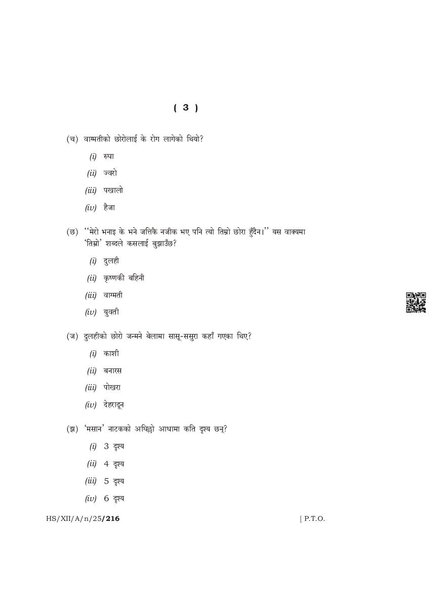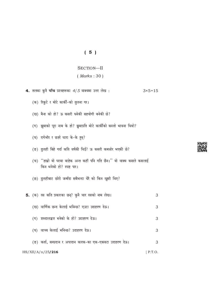 The complete class 12 question paper for Nepali Elective subject is as follows.