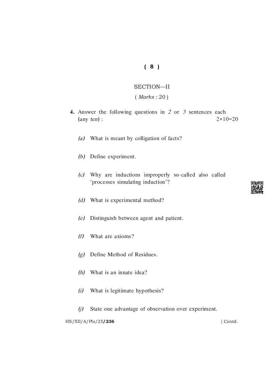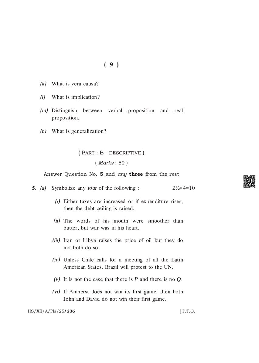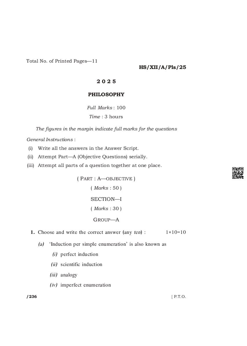 | Paper | Meghalaya Board Class 12 Question Paper of Philosophy |