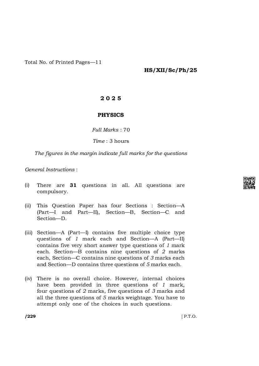 Meghalaya Board (MBOSE) Class 12 Question Paper 2025 for Physics is now available for download. You can download the MBOSE HSSLC Physics Question Paper PDF from this page of aglasem. This Meghalaya Board Class 12 Question Paper is for the subject Physics containing exact questions asked by the Meghalaya Board of School of Education in past year class 12 exams of Physics. Therefore by solving this HSSLC Physics question paper, you can target full marks in the upcoming class 12 exams.