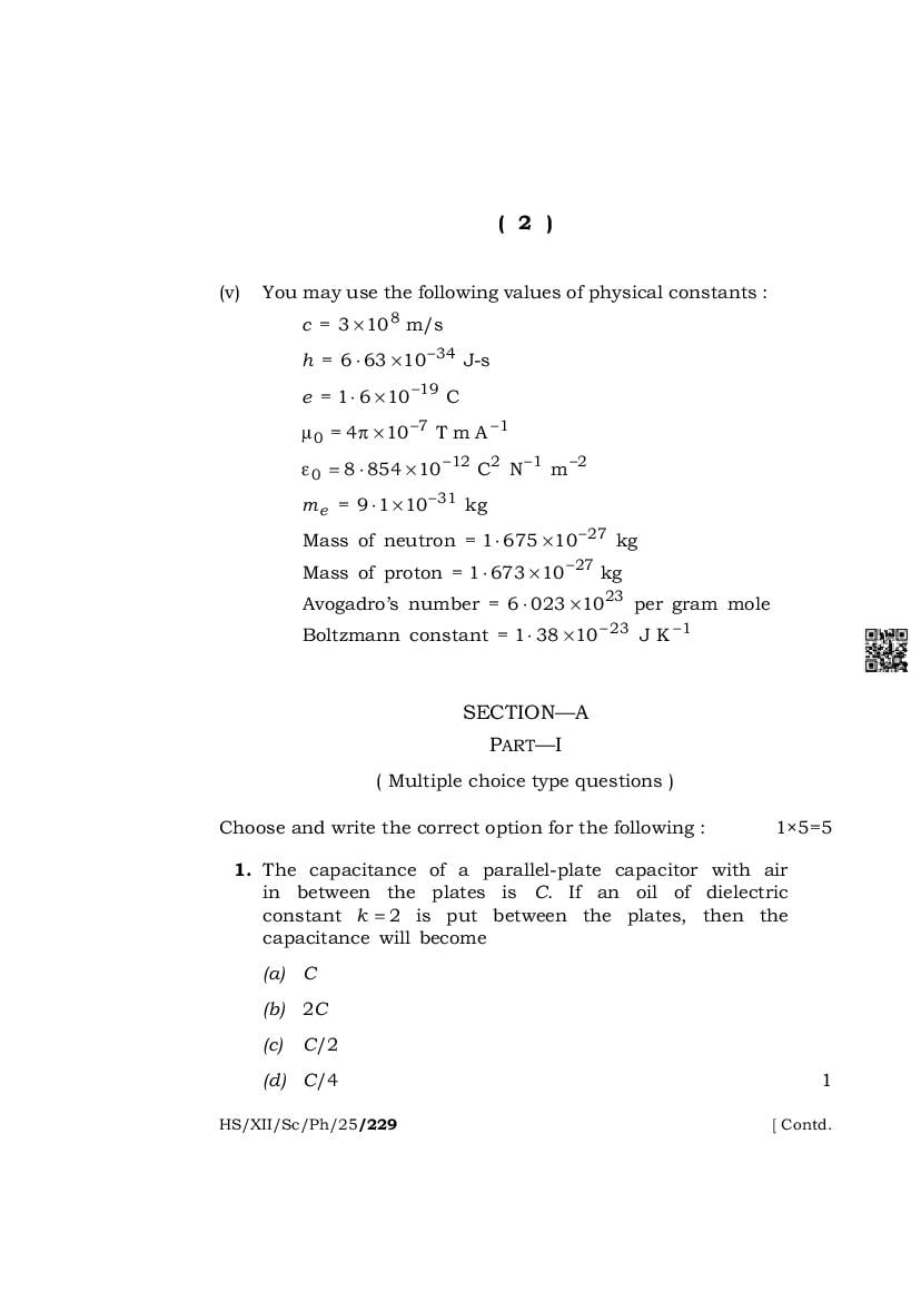 The important highlights of this HSSLC Physics question paper are as follows.