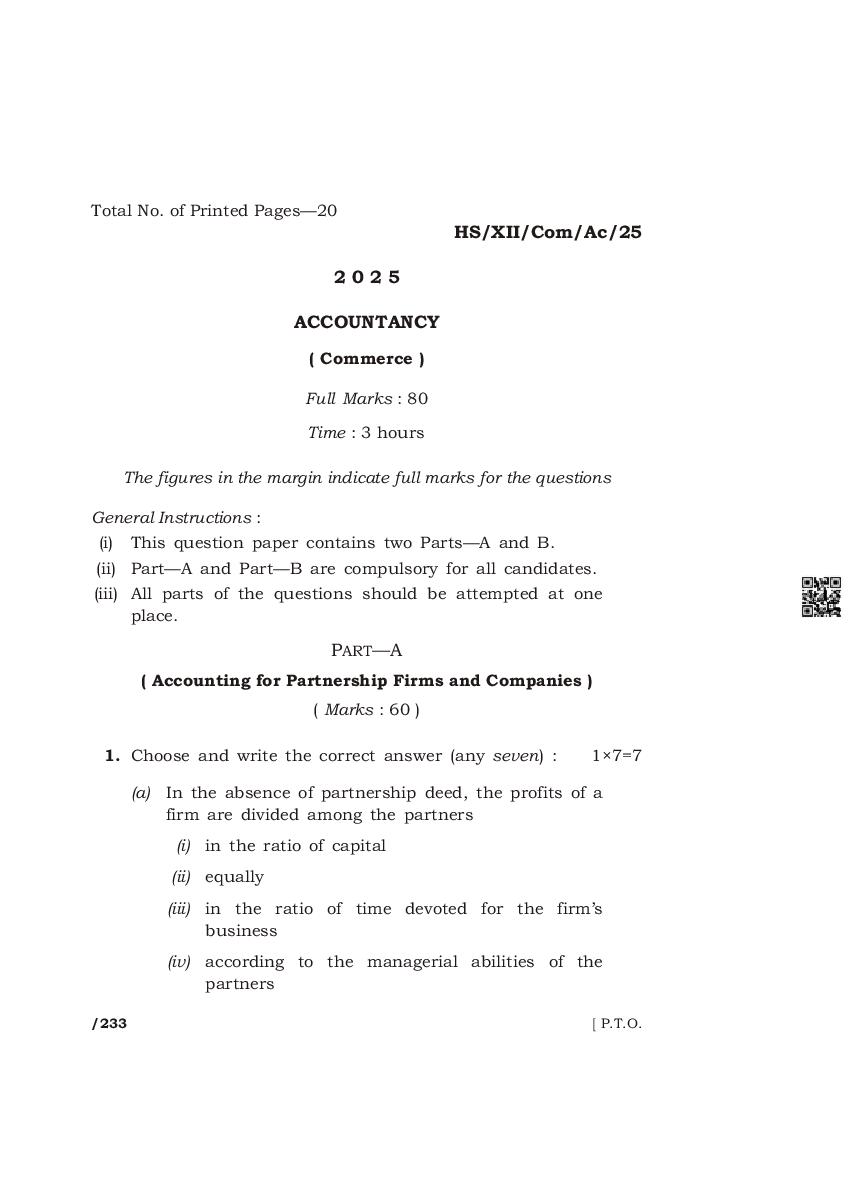 Meghalaya Board (MBOSE) Class 12 Question Paper 2025 for Accountancy is now available for download. You can download the MBOSE HSSLC Accountancy Question Paper PDF from this page of aglasem. This Meghalaya Board Class 12 Question Paper is for the subject Accountancy containing exact questions asked by the Meghalaya Board of School of Education in past year class 12 exams of Accountancy. Therefore by solving this HSSLC Accountancy question paper, you can target full marks in the upcoming class 12 exams.