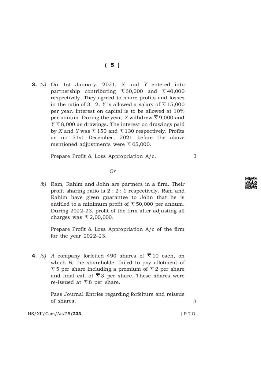 Meghalaya Board (MBOSE) Class 12 Question Paper 2023 for Accountancy PDF Download Link – Click Here to Download Question Paper PDF